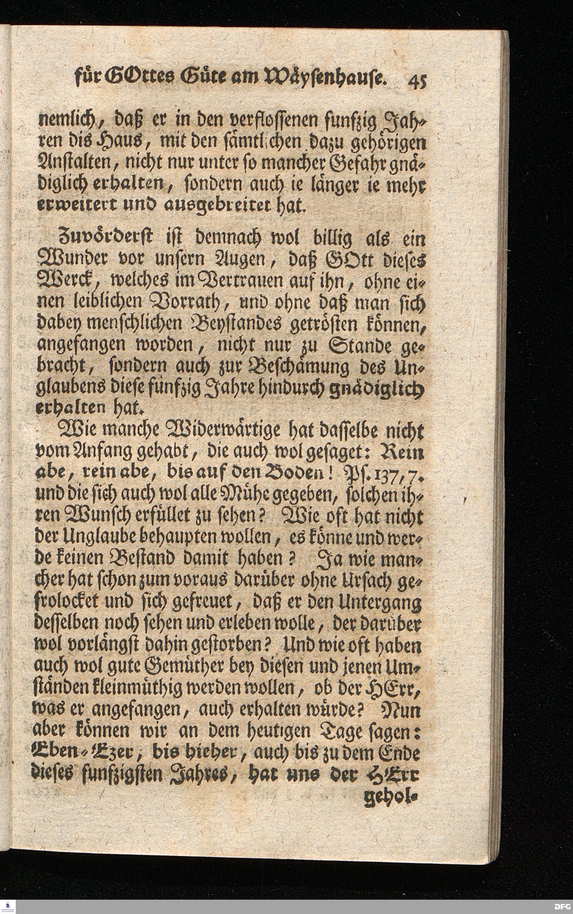 Schuldiges Lob- und Danck-Opfer für die Güte und Wohlthaten Gottes, so derselbe an dem Wäysenhause zu Glaucha an Halle seitdem der Grundstein zu demselben vor funfzig Jahren geleget worden, bis hieher reichlich erzeiget hat, den 24.sten Jul. 1748.