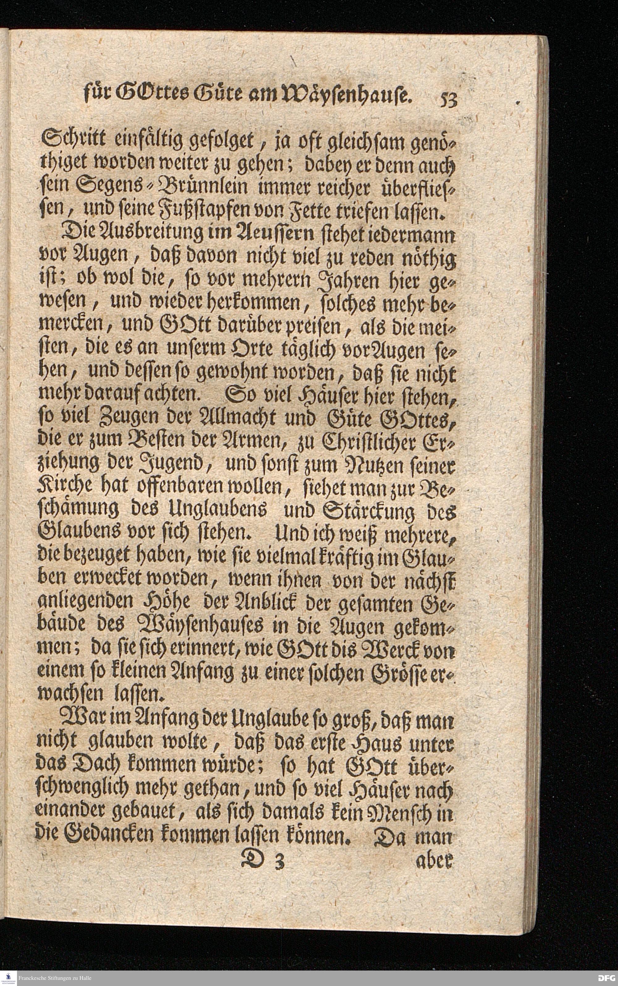 Schuldiges Lob- und Danck-Opfer für die Güte und Wohlthaten Gottes, so derselbe an dem Wäysenhause zu Glaucha an Halle seitdem der Grundstein zu demselben vor funfzig Jahren geleget worden, bis hieher reichlich erzeiget hat, den 24.sten Jul. 1748.