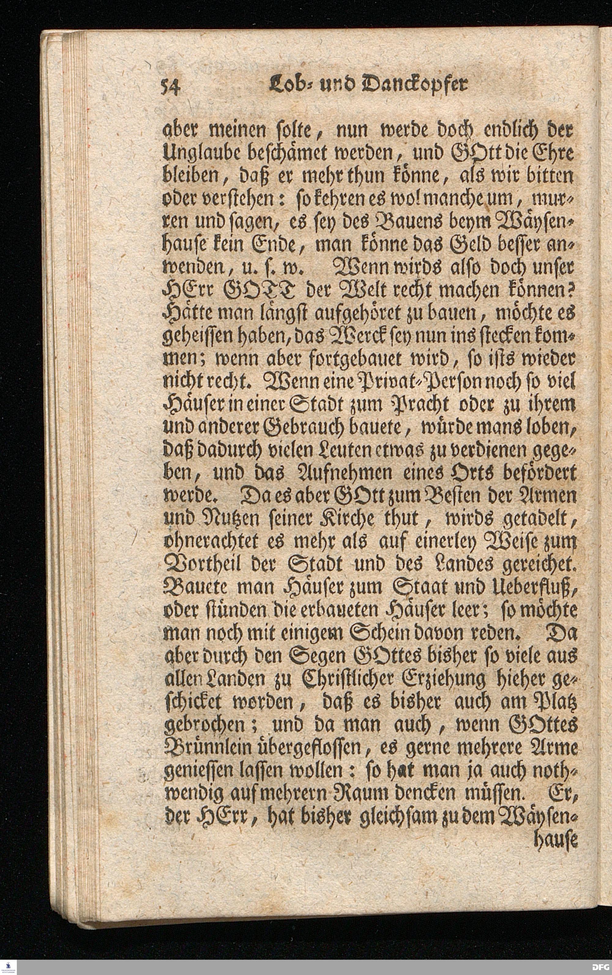 Schuldiges Lob- und Danck-Opfer für die Güte und Wohlthaten Gottes, so derselbe an dem Wäysenhause zu Glaucha an Halle seitdem der Grundstein zu demselben vor funfzig Jahren geleget worden, bis hieher reichlich erzeiget hat, den 24.sten Jul. 1748.
