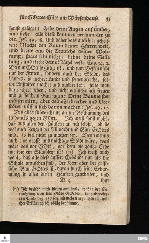 Schuldiges Lob- und Danck-Opfer für die Güte und Wohlthaten Gottes, so derselbe an dem Wäysenhause zu Glaucha an Halle seitdem der Grundstein zu demselben vor funfzig Jahren geleget worden, bis hieher reichlich erzeiget hat, den 24.sten Jul. 1748.