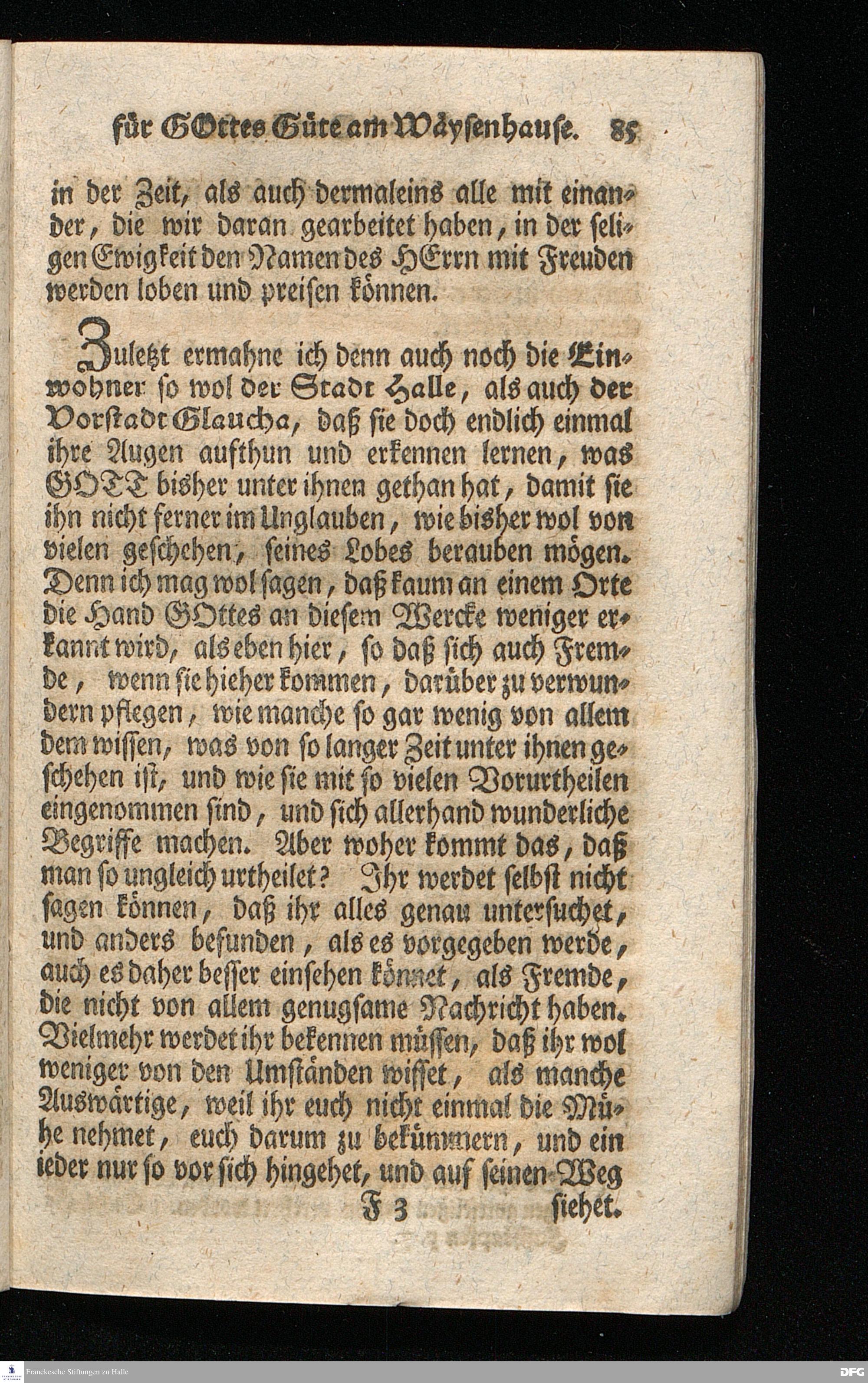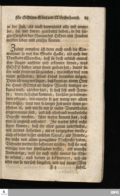 Schuldiges Lob- und Danck-Opfer für die Güte und Wohlthaten Gottes, so derselbe an dem Wäysenhause zu Glaucha an Halle seitdem der Grundstein zu demselben vor funfzig Jahren geleget worden, bis hieher reichlich erzeiget hat, den 24.sten Jul. 1748.