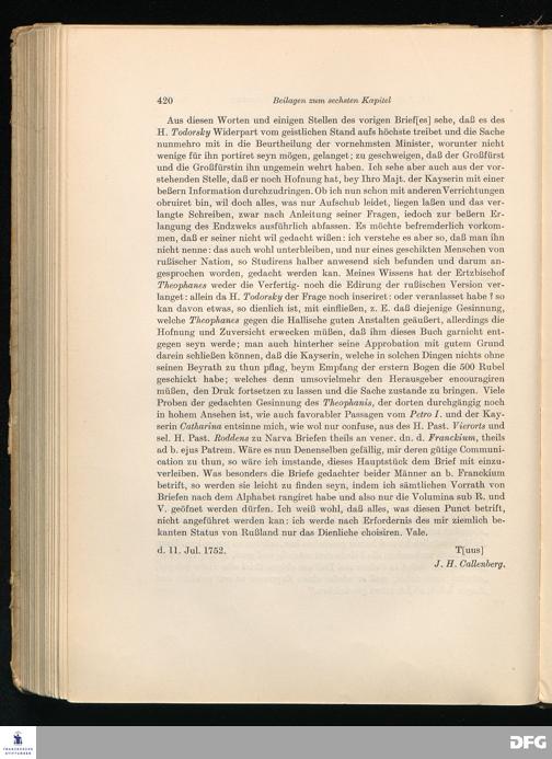 14. J. G. Pflug an J. H. Callenberg, aus Petersburg