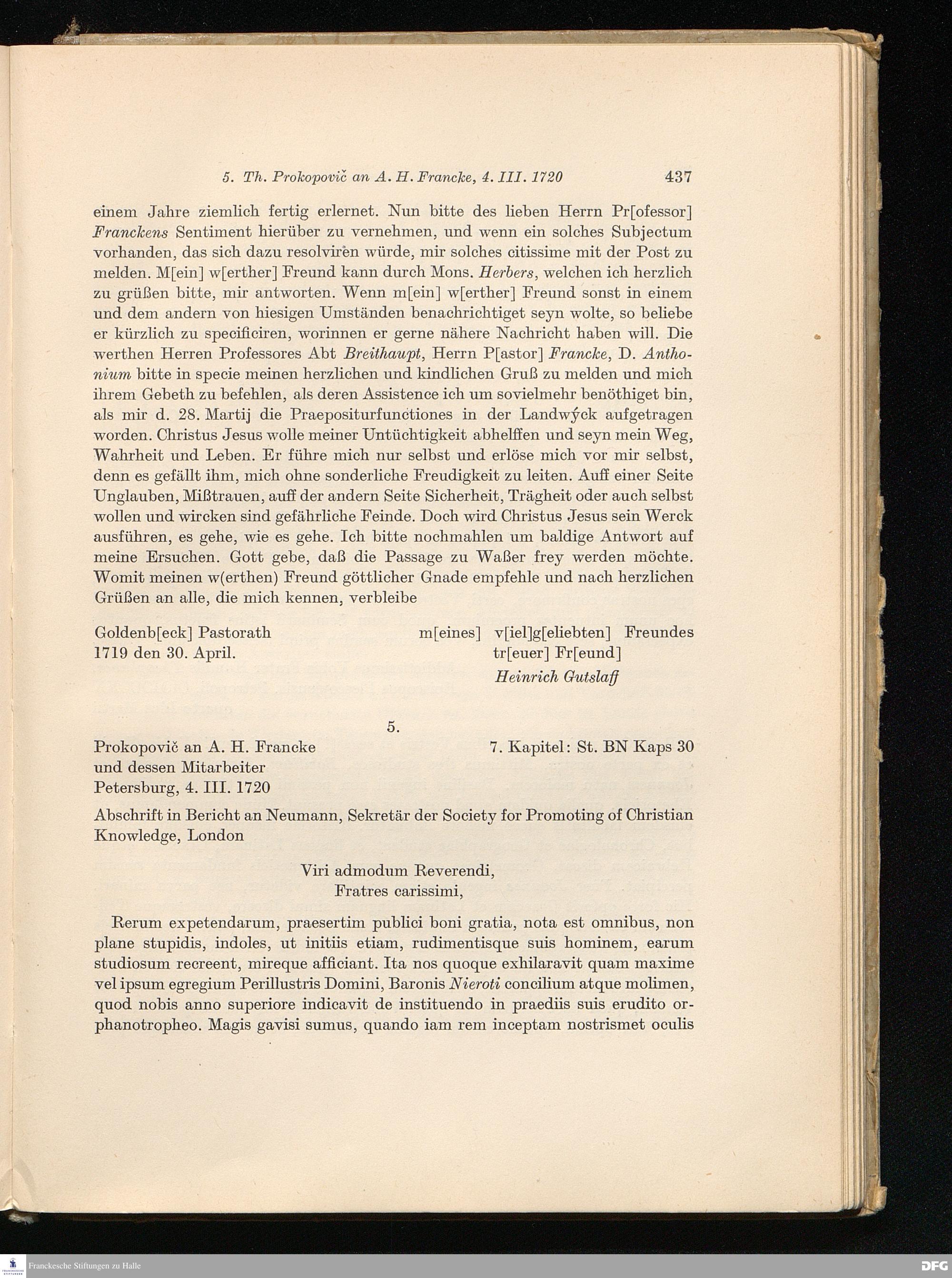 5. Prokopovič an A. H. Francke und dessen Mitarbeiter