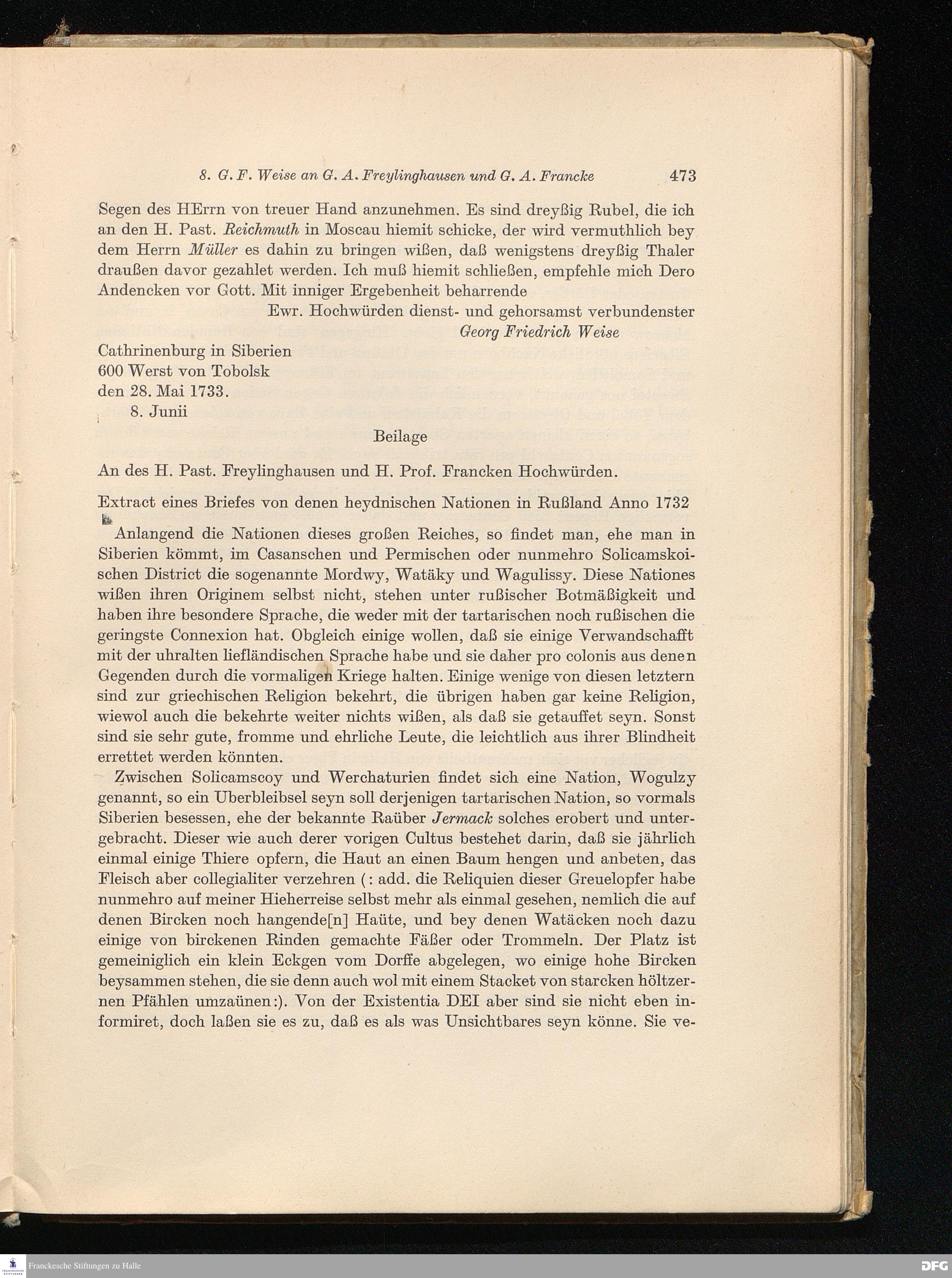 8. G. F. Weise an G. A. Freylinghausen und G. A. Francke