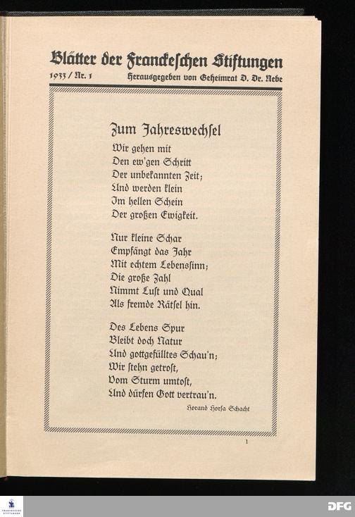 Blätter der Franckeschen Stiftungen 1933/ Nr. 1