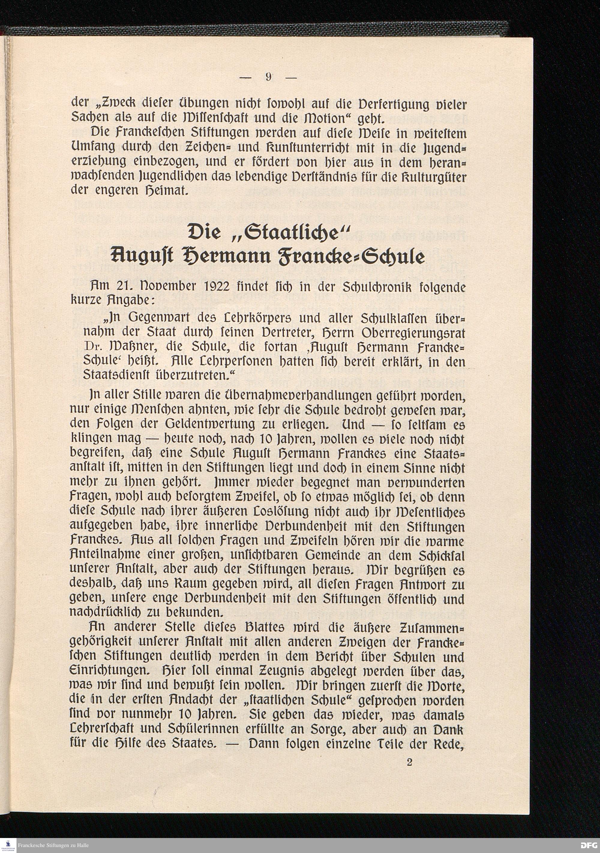 Blätter der Franckeschen Stiftungen Halle/Saale 1933