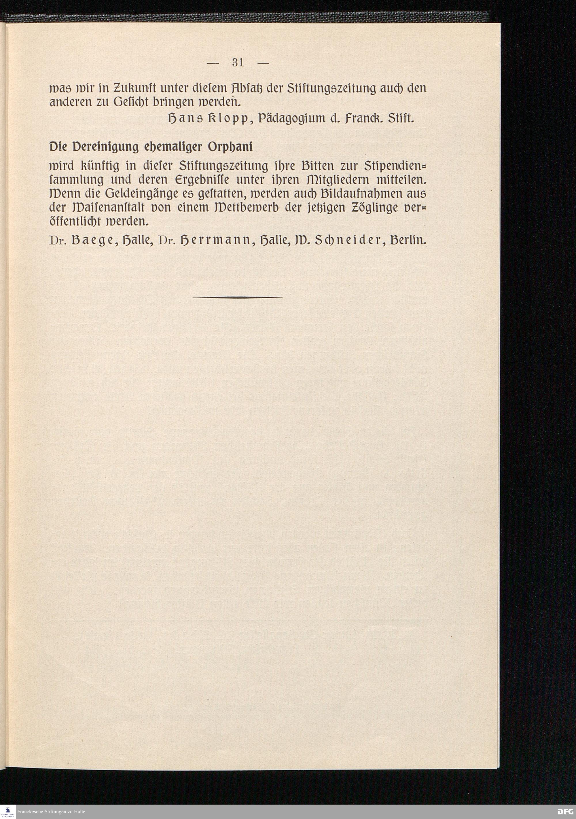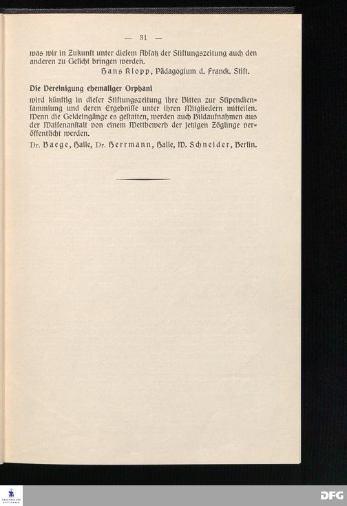 Blätter der Franckeschen Stiftungen Halle/Saale 1933