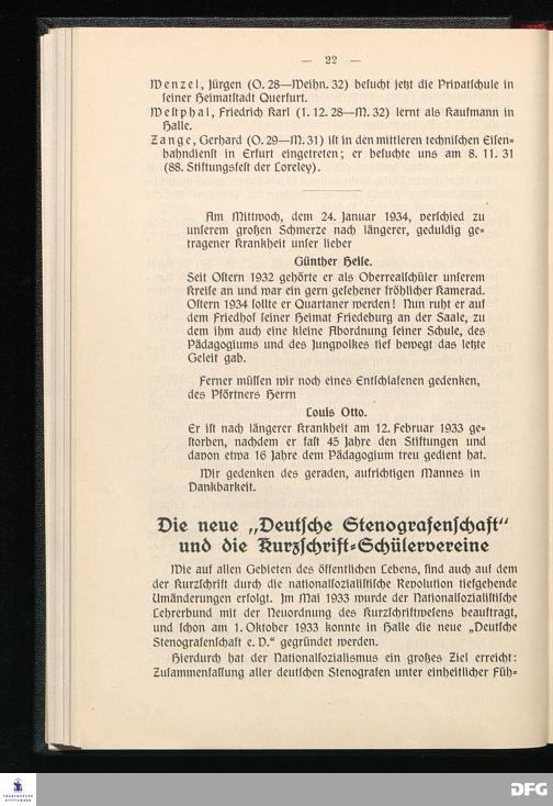 Die neue "Deutsche Stenografenschaft" und die Kurzschrift-Schülervereine