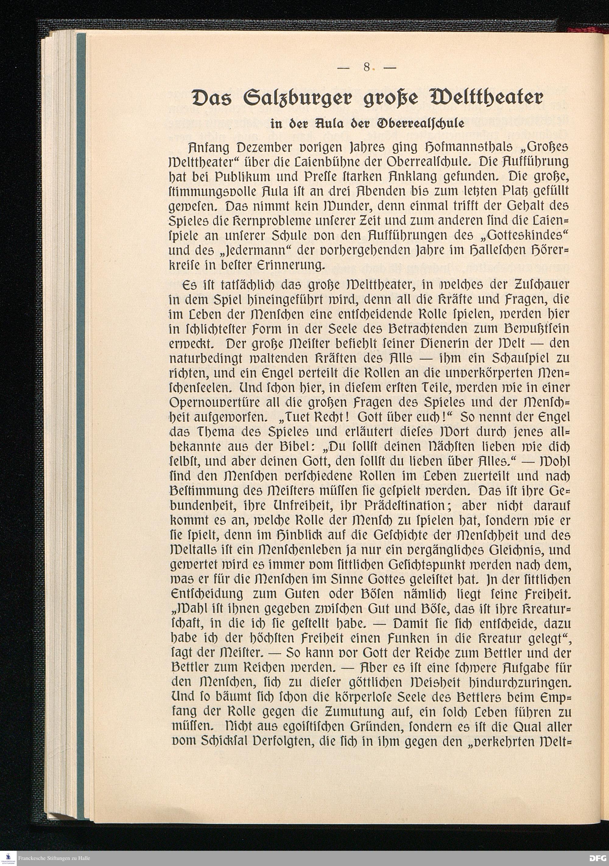 Das Salzburger große Welttheater in der Aula der Oberrealschule