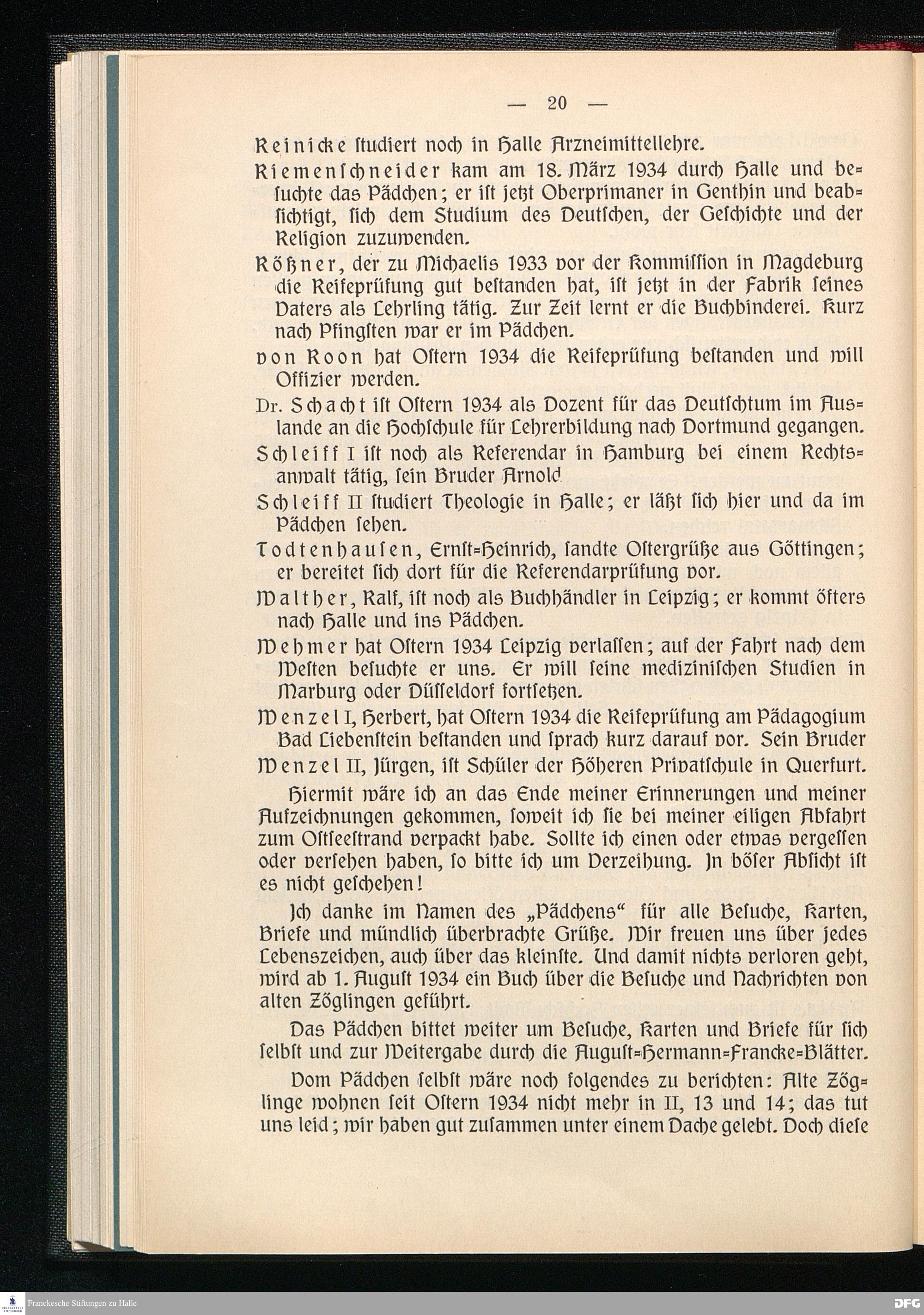 Blätter der Franckeschen Stiftungen Halle (Saale) 1934