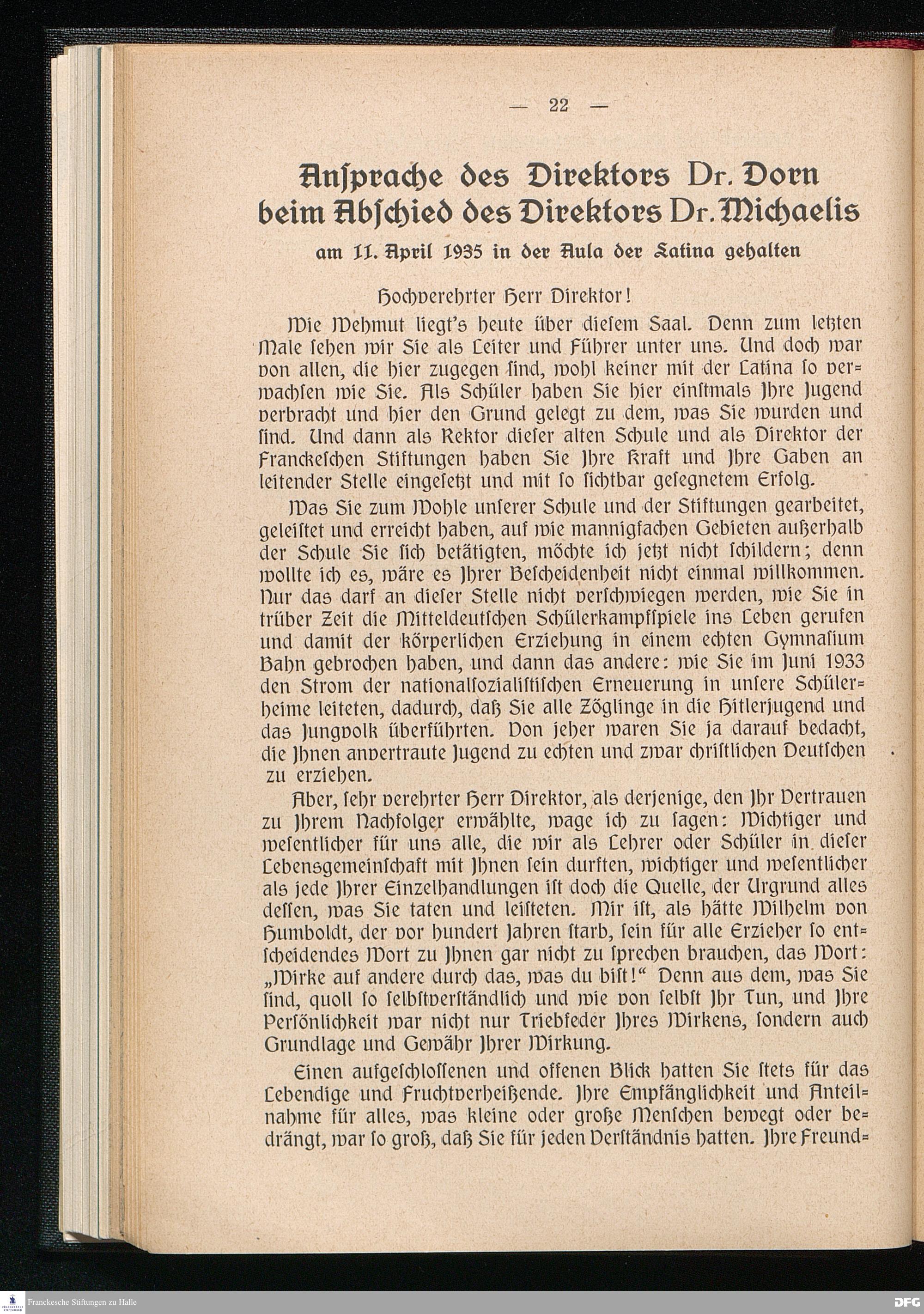 Ansprache des Direktors Dr. Dorn beim Abschied des Direktors Dr. Michaelis am 11....