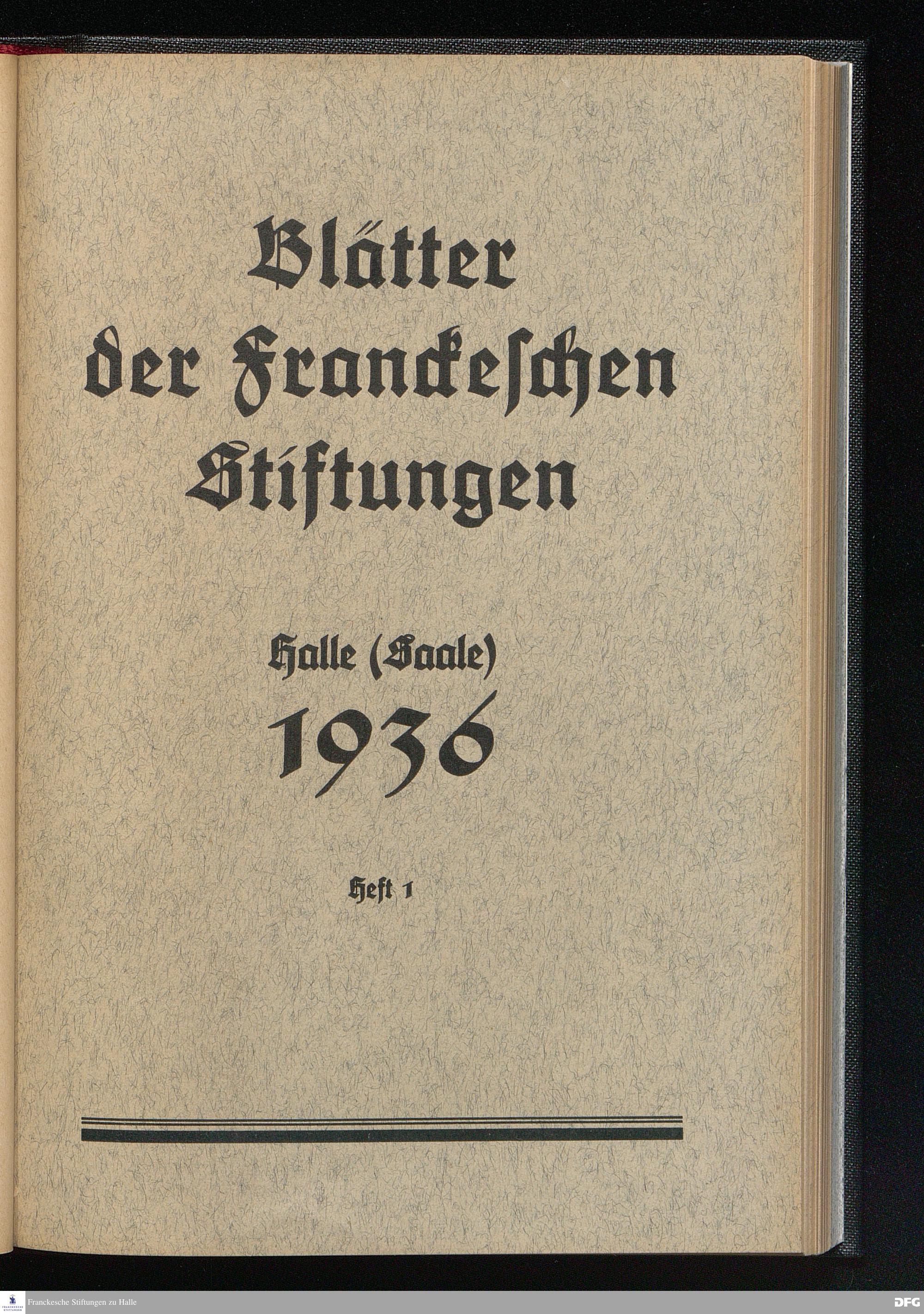 Blätter der Franckeschen Stiftungen Halle (Saale) 1936 Heft 1