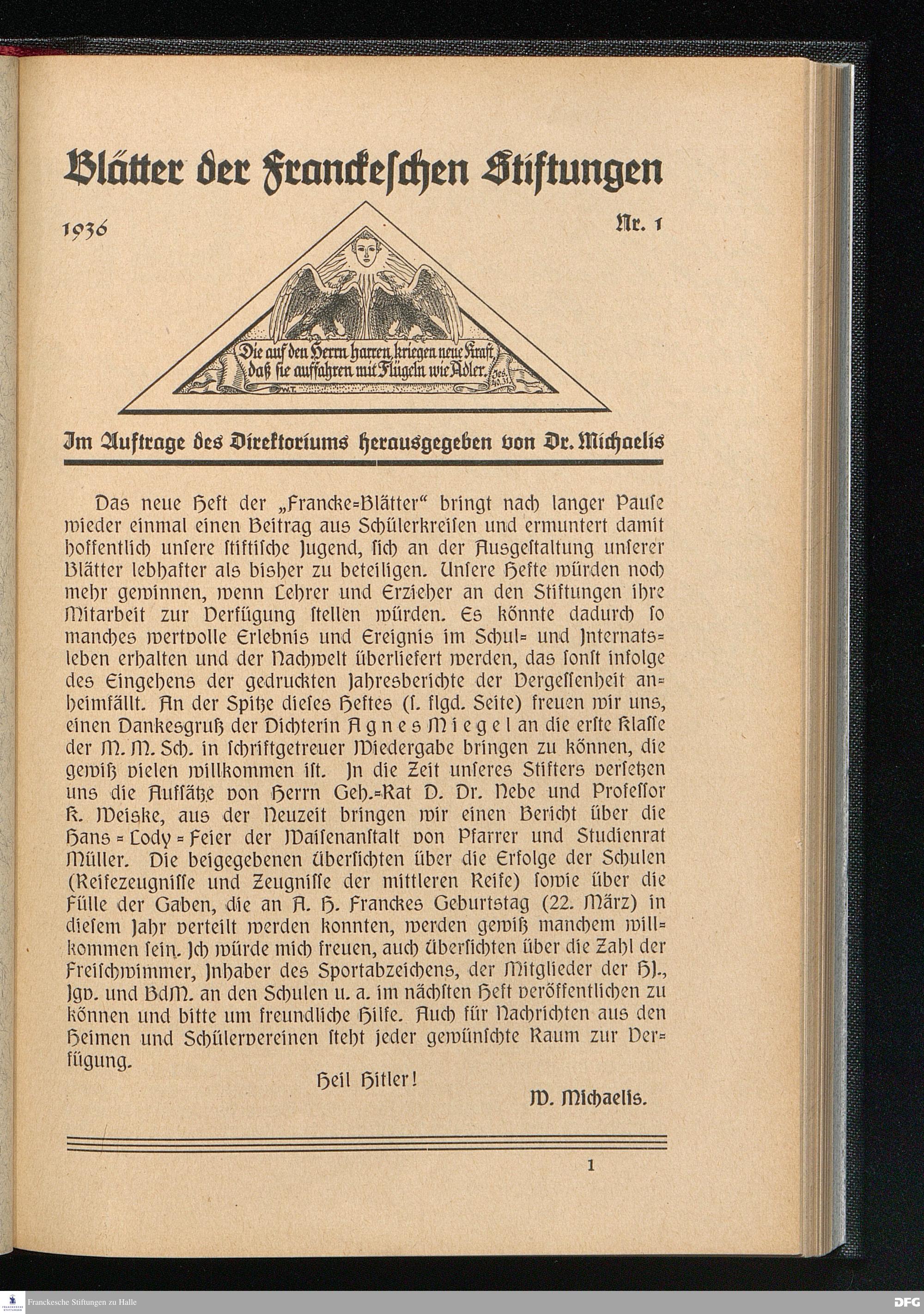 Blätter der Franckeschen Stiftungen 1936 Nr. 1