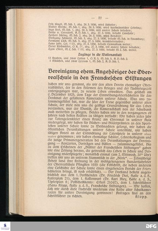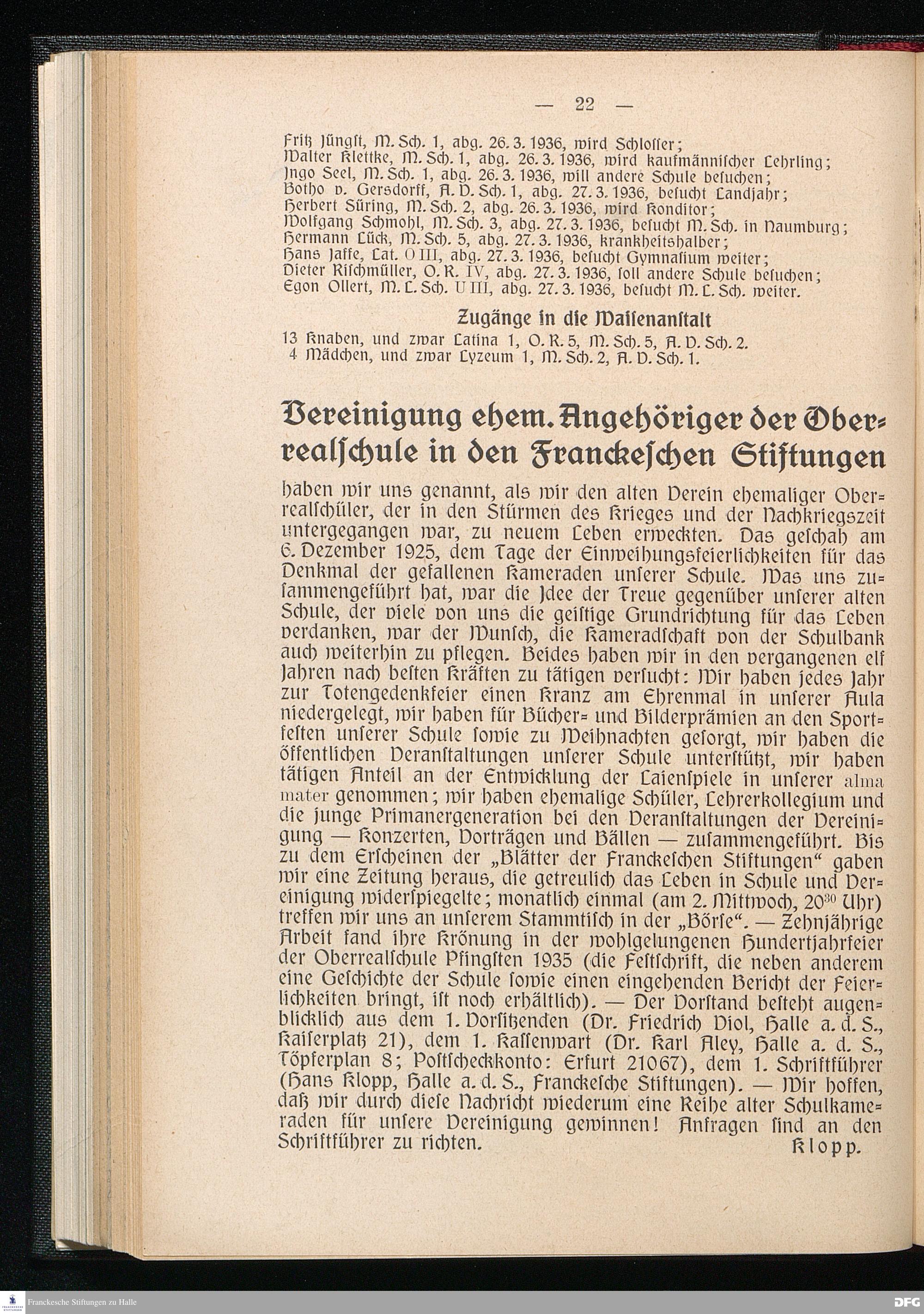 Blätter der Franckeschen Stiftungen 1936 Nr. 1