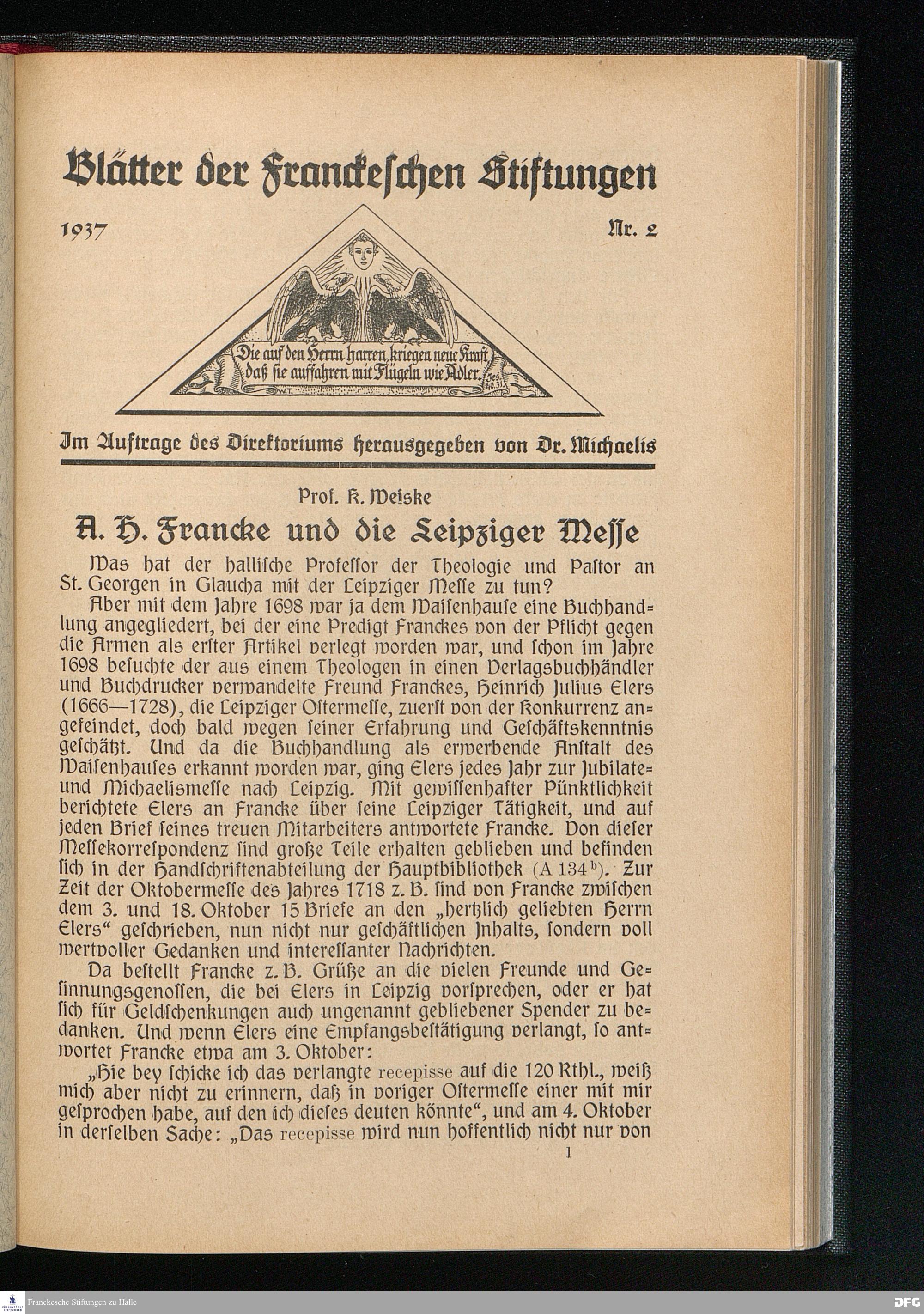 Blätter der Franckeschen Stiftungen 1937 Nr. 2