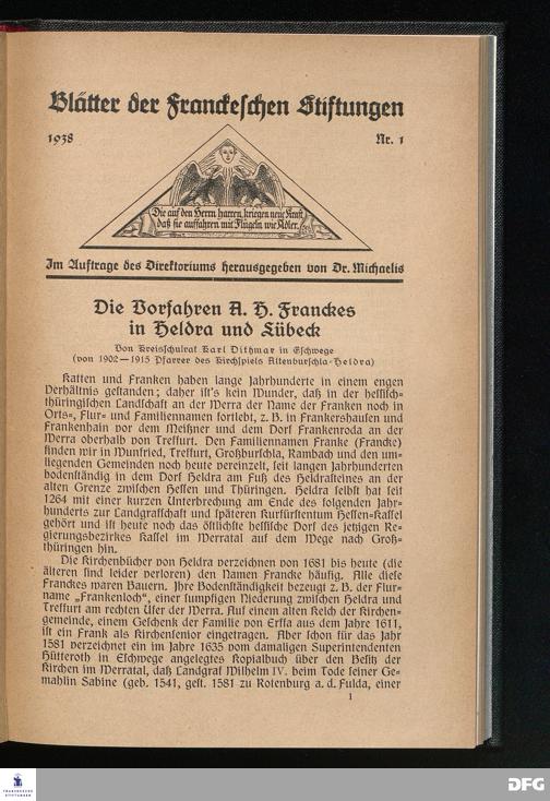 Blätter der Franckeschen Stiftungen 1938 Nr. 1