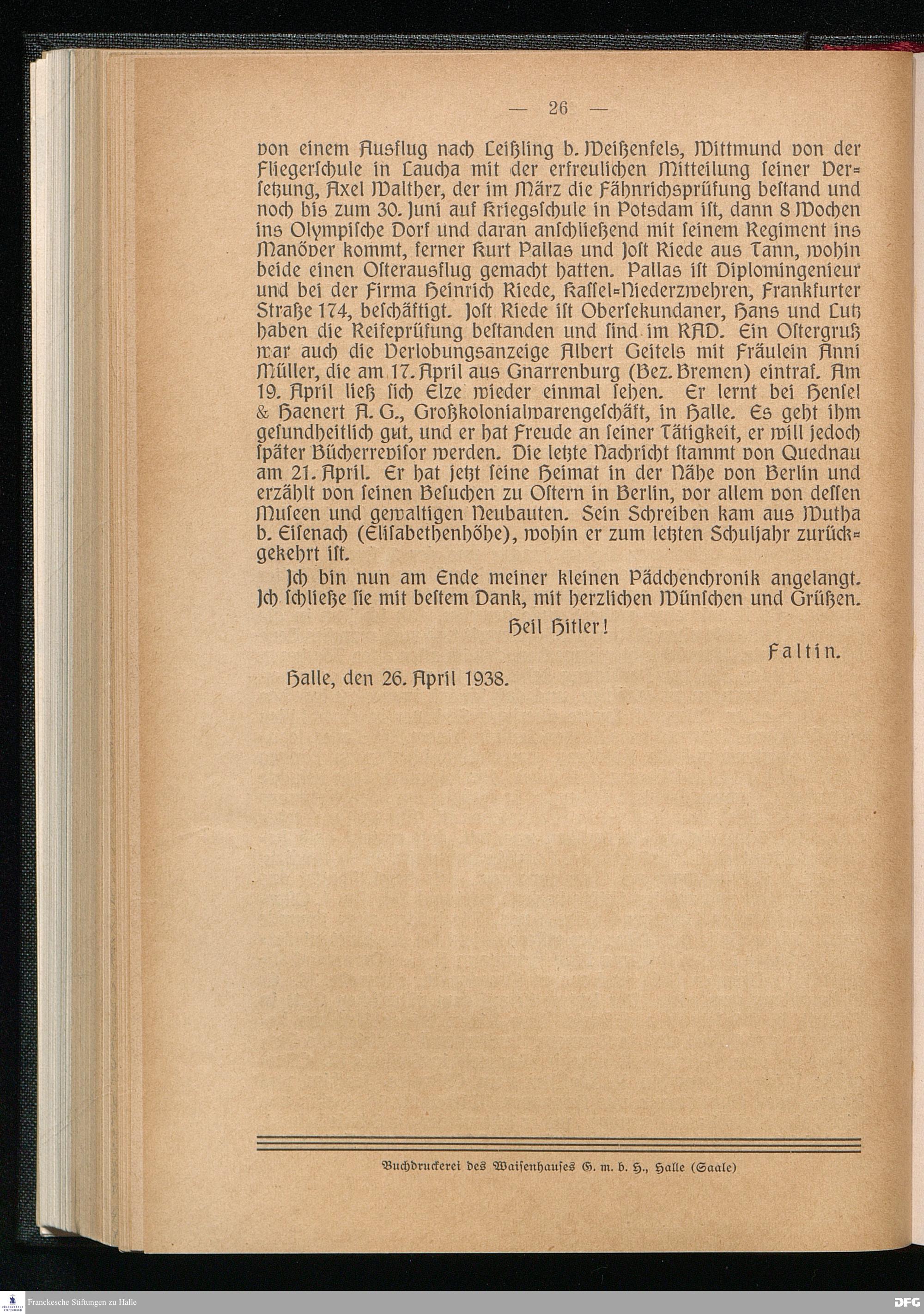 Blätter der Franckeschen Stiftungen 1938 Nr. 1