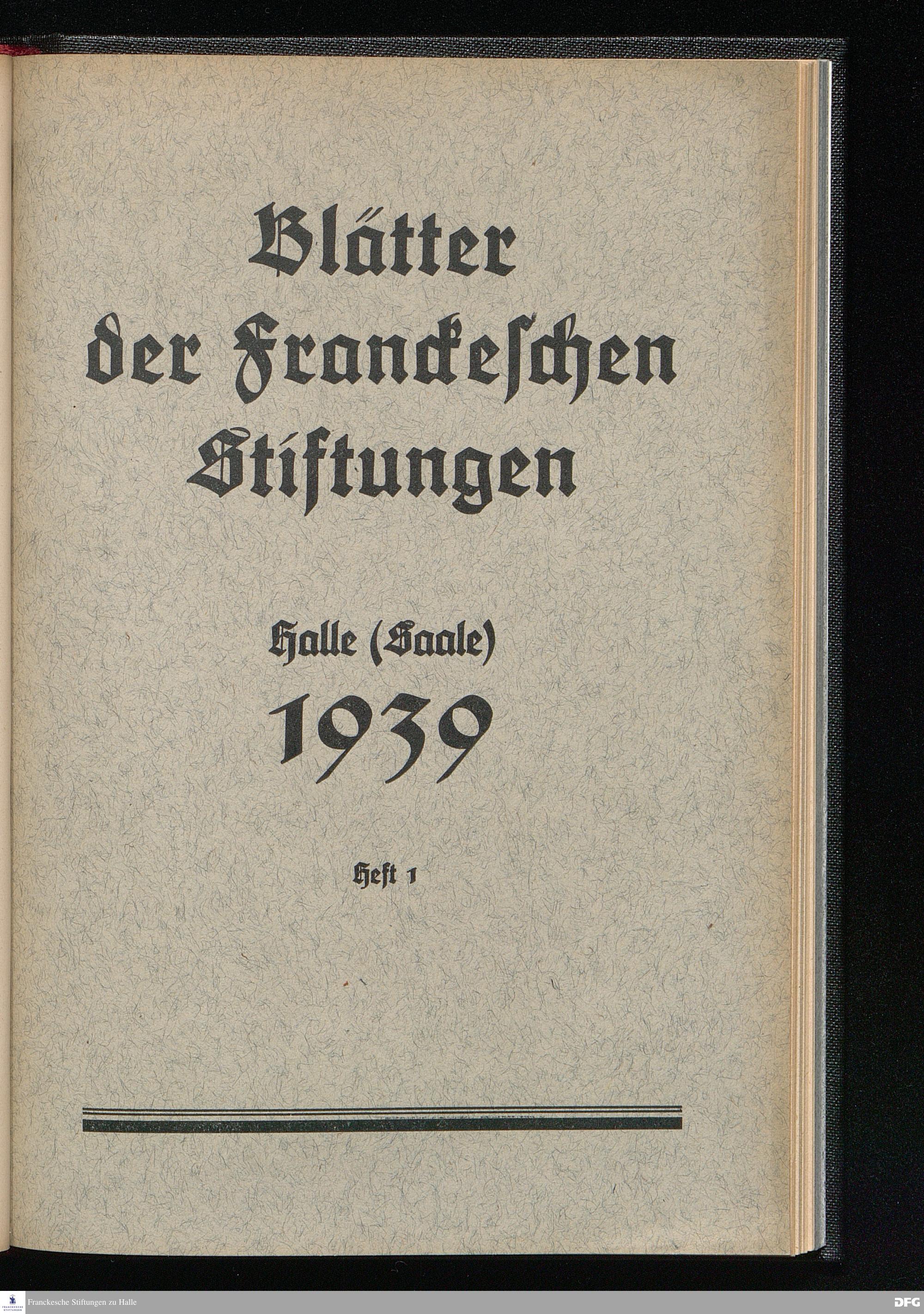 Blätter der Franckeschen Stiftungen Halle (Saale) 1939 Heft 1