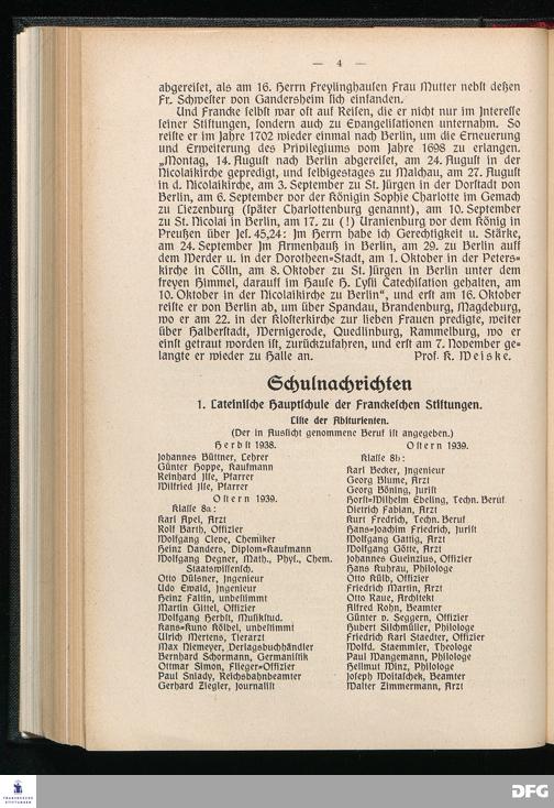 Blätter der Franckeschen Stiftungen 1939 Nr. 1