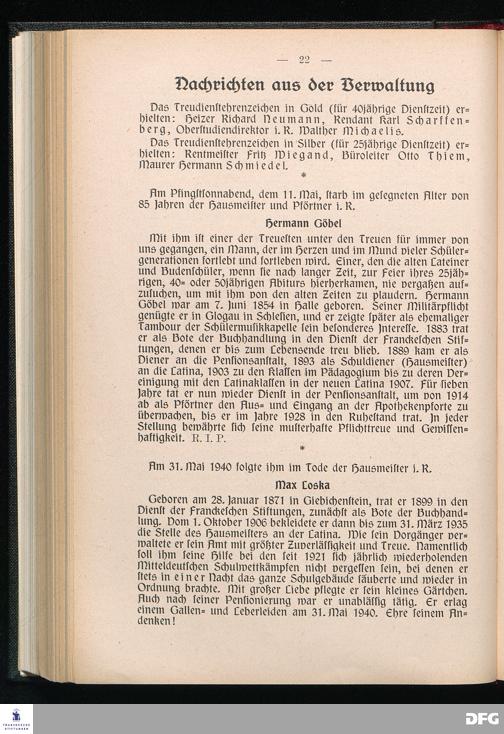 Blätter der Franckeschen Stiftungen 1940 Nr. 1