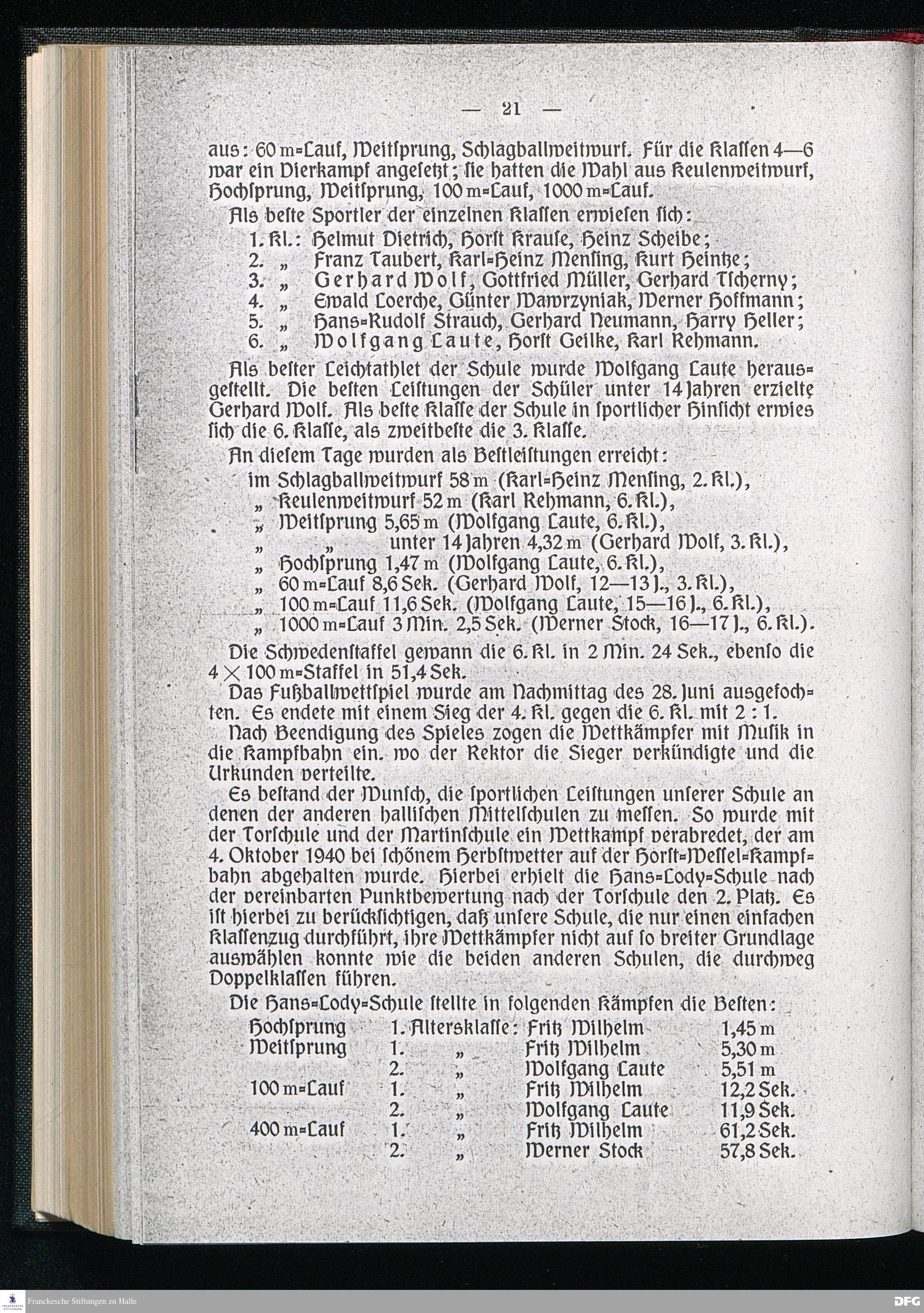 Die Sommersportfeste der Hans-Lody-Schule 1940