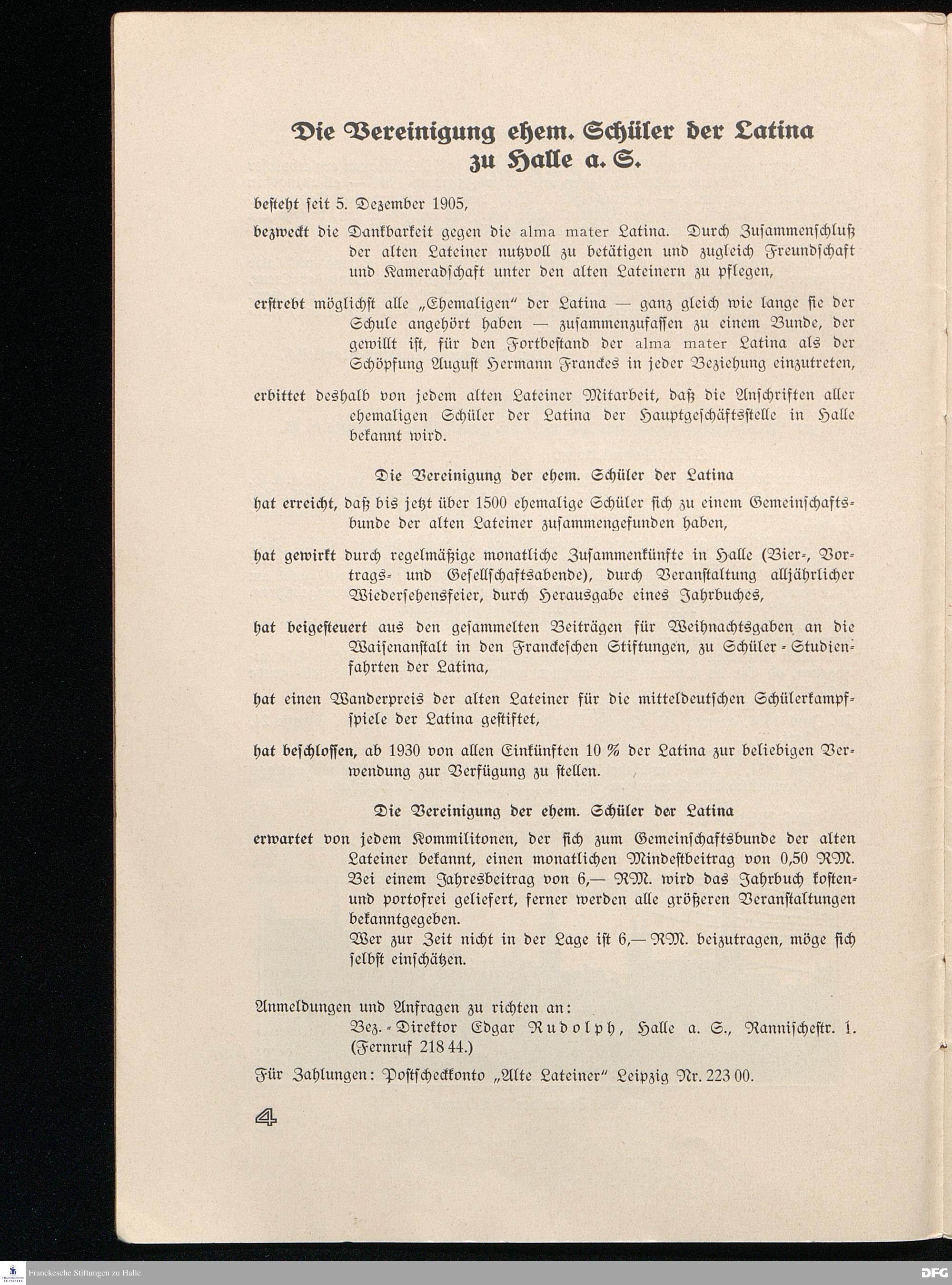 Die Vereinigung ehem. Schüler der Latina zu Halle a. S.