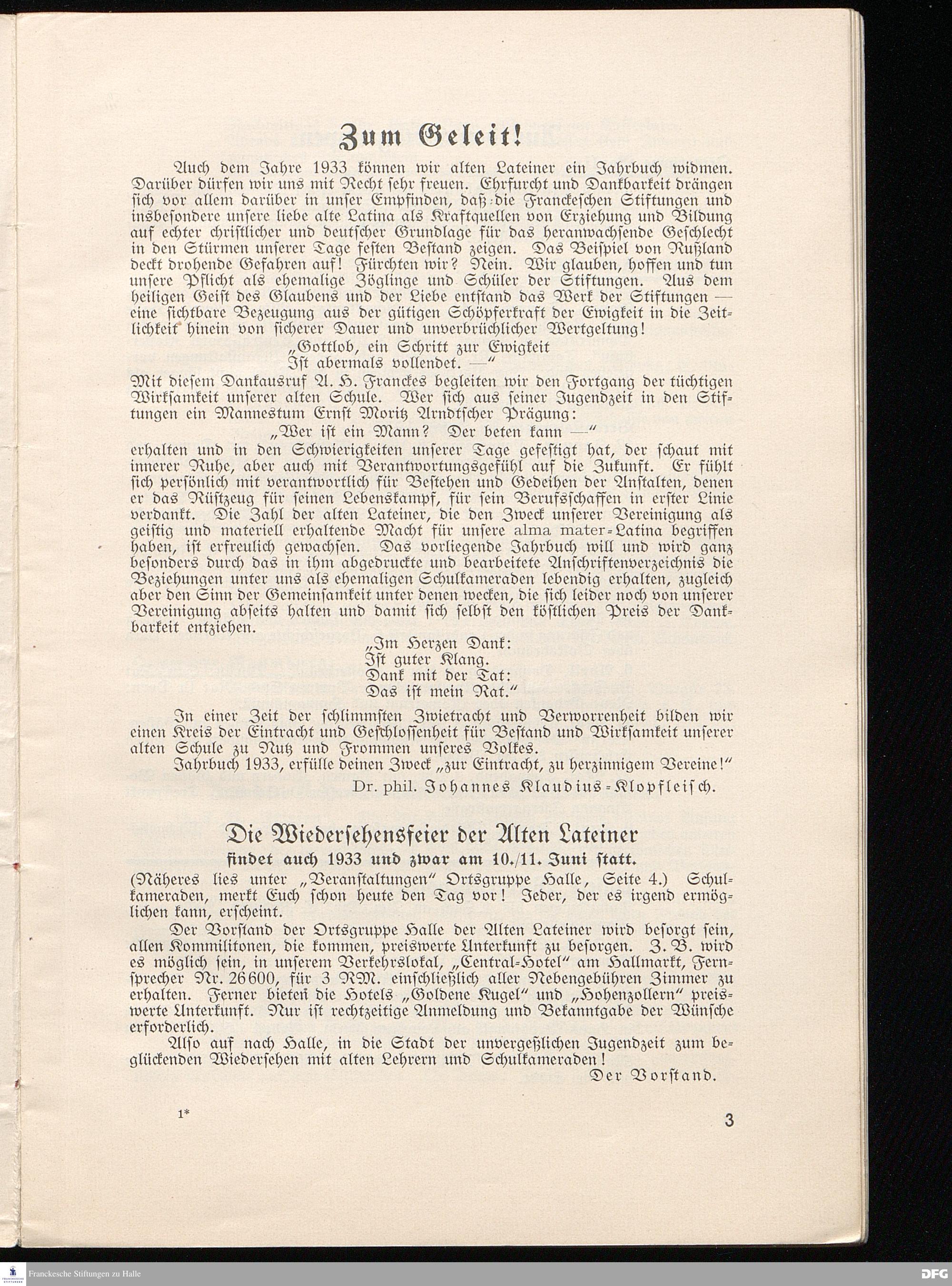 Die Wiedersehensfeier der Alten Lateiner findet auch 1933 und zwar am 10./11. Juni...