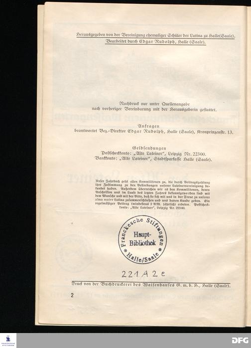 SCHOLA LATINA Halle (Saale) 1934