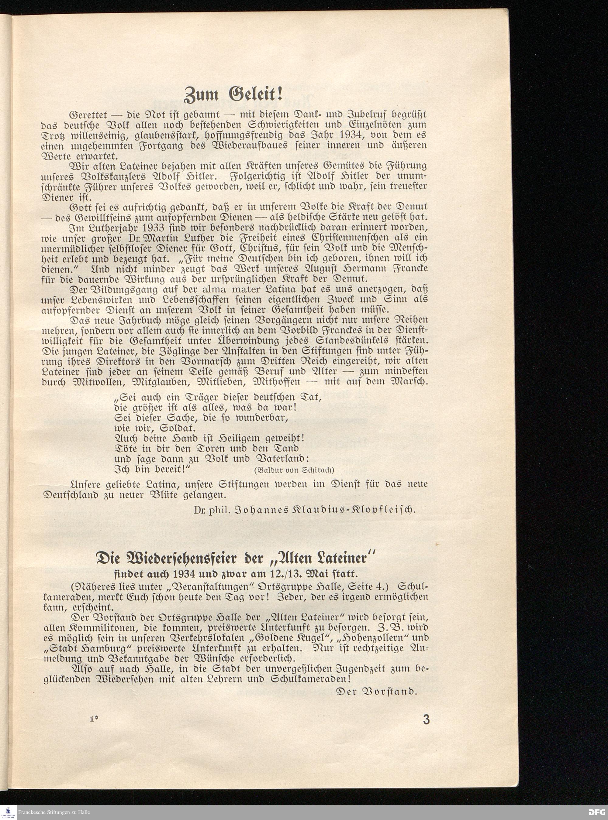 Die Wiedersehensfeier der "Alten Lateiner" findet auch 1934 und zwar am 12./13. Mai...