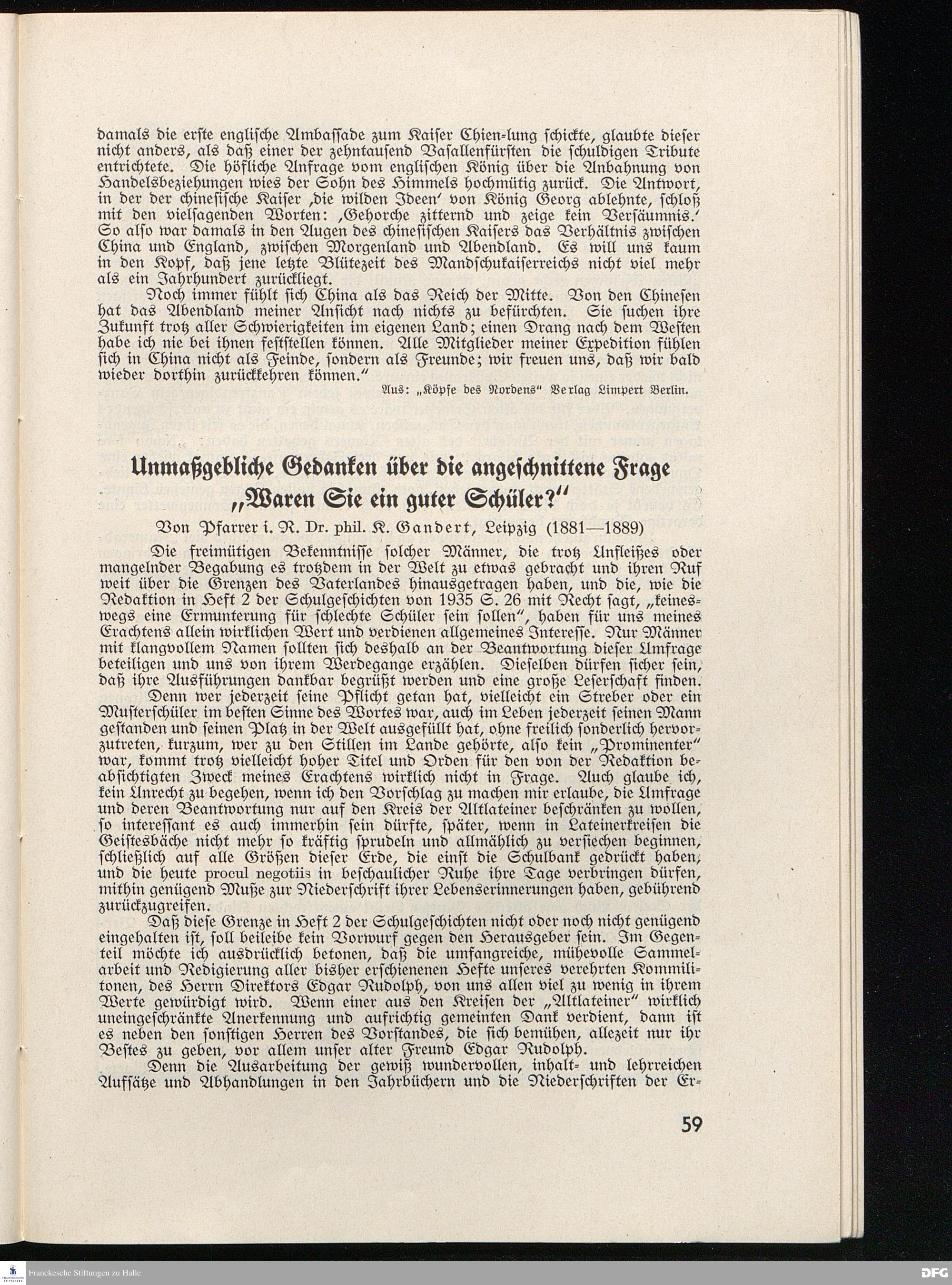 Unmaßgebliche Gedanken über die angeschnittene Frage "Waren Sie ein guter Schüle...