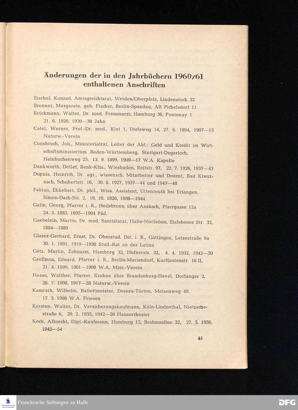 Anschriften-Verzeichnis