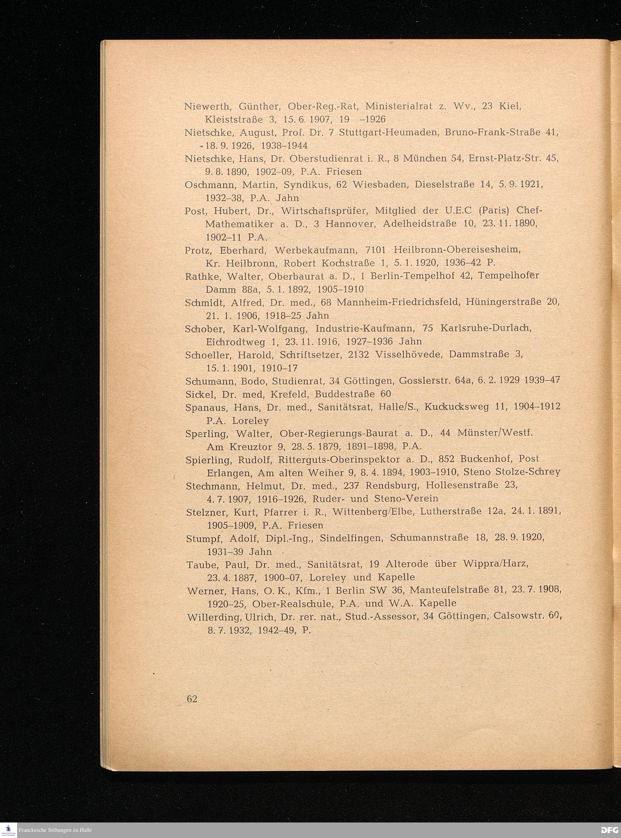 Anschriftenverzeichnis