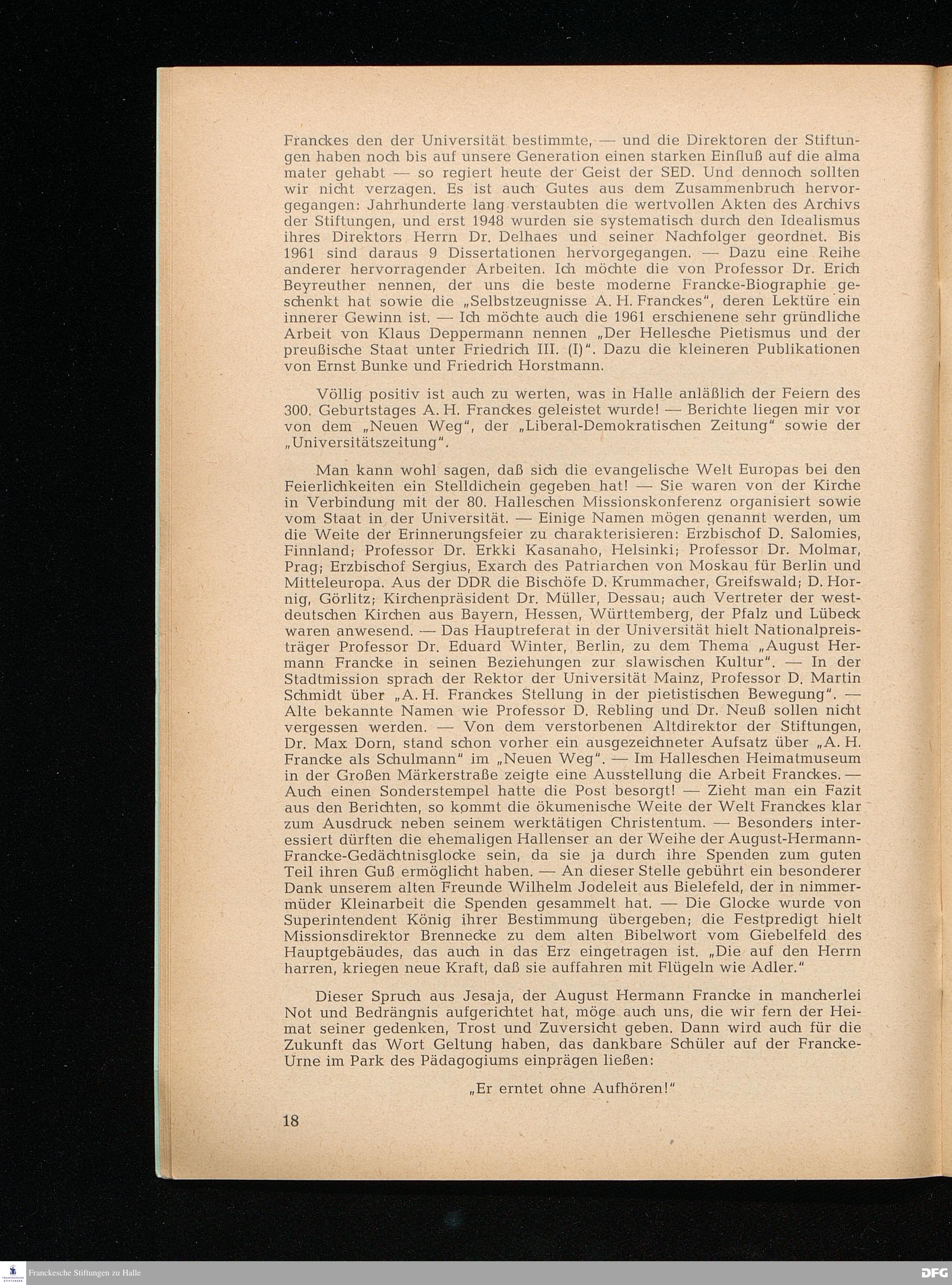 August Hermann Francke Festrede gehalten am 16. Juni 1963 vor der Vereinigung ehemaliger...