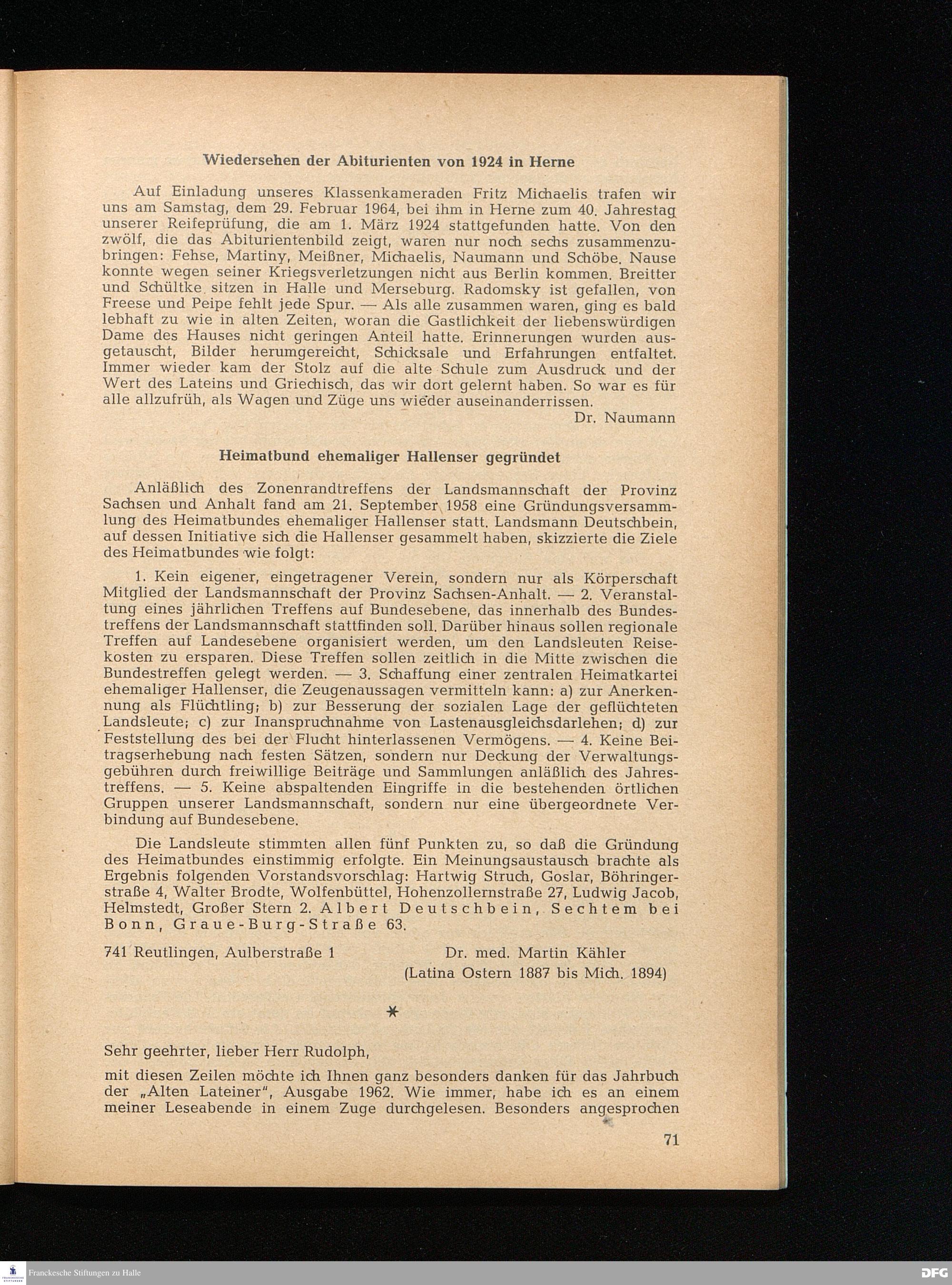 Heimatbund ehemaliger Hallenser gegründet