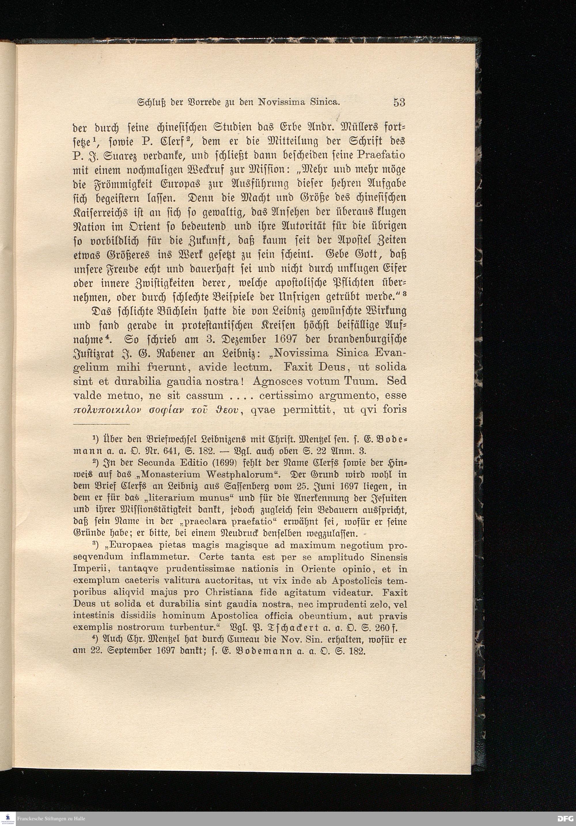 Anhang I. Unveröffentlichter Briefwechsel zwischen Leibniz und A. H. Francke aus den Jahren 1697-1699.