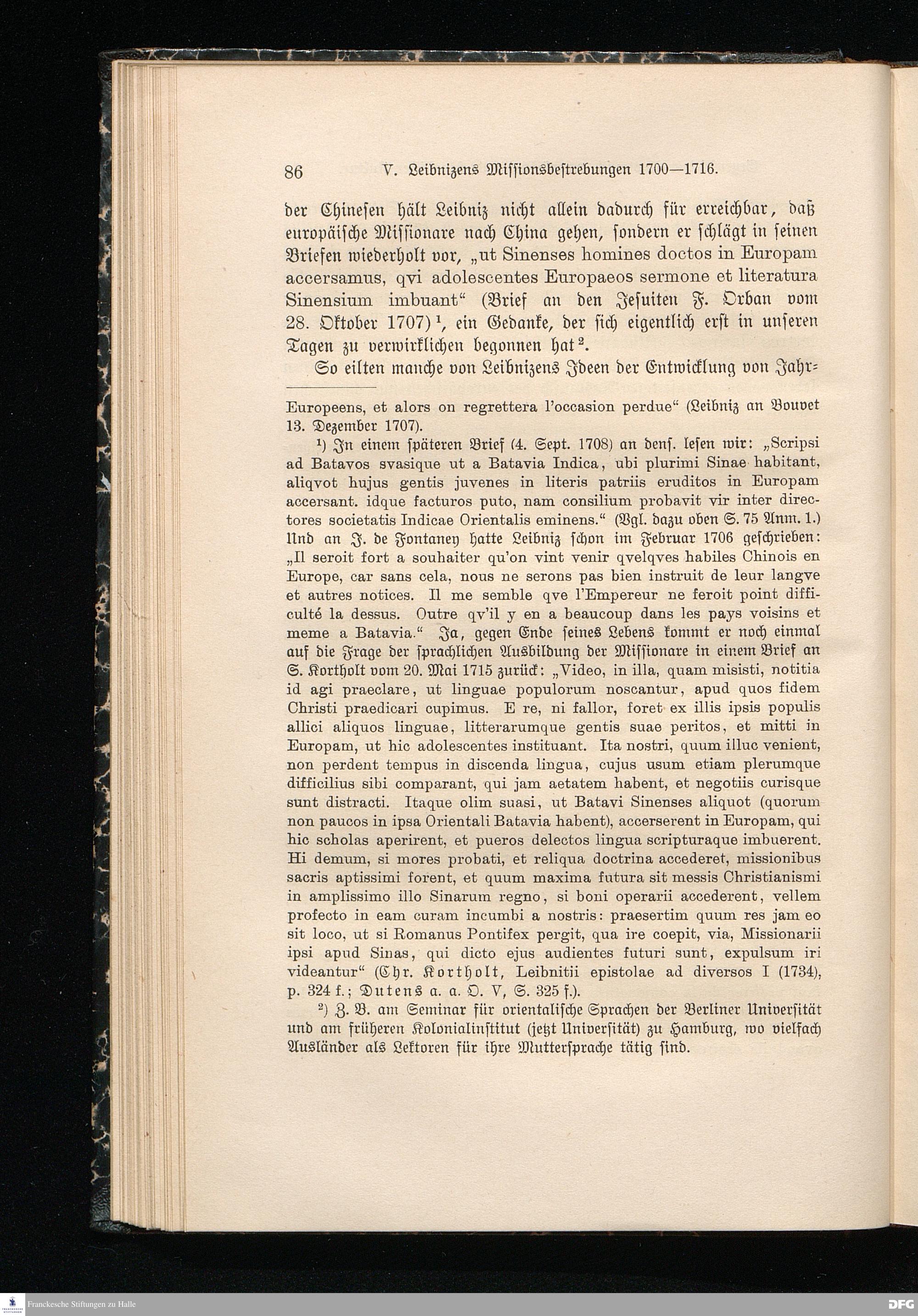 Fünftes Kapitel. Leibnizens Missionsbestrebungen in der Folgezeit (1700-1716).