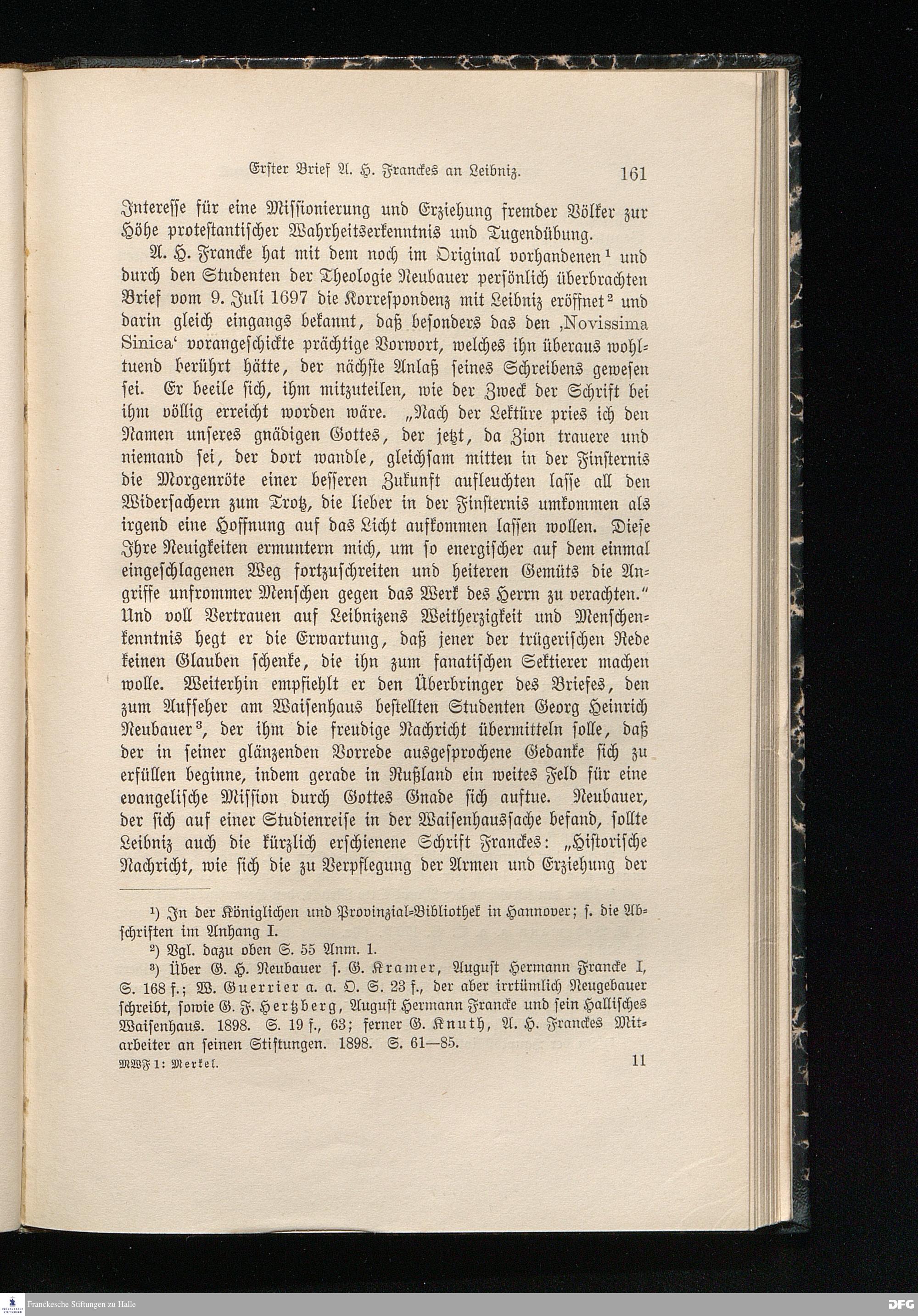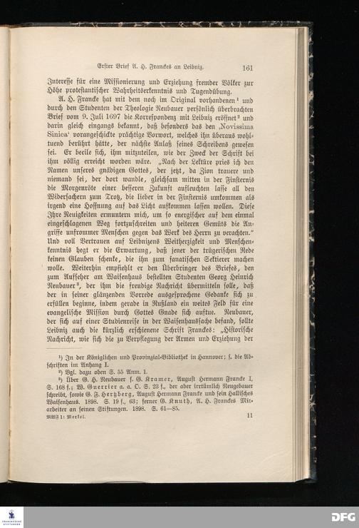 Anhang I. Unveröffentlichter Briefwechsel zwischen Leibniz und A. H. Francke aus den Jahren 1697-1699.