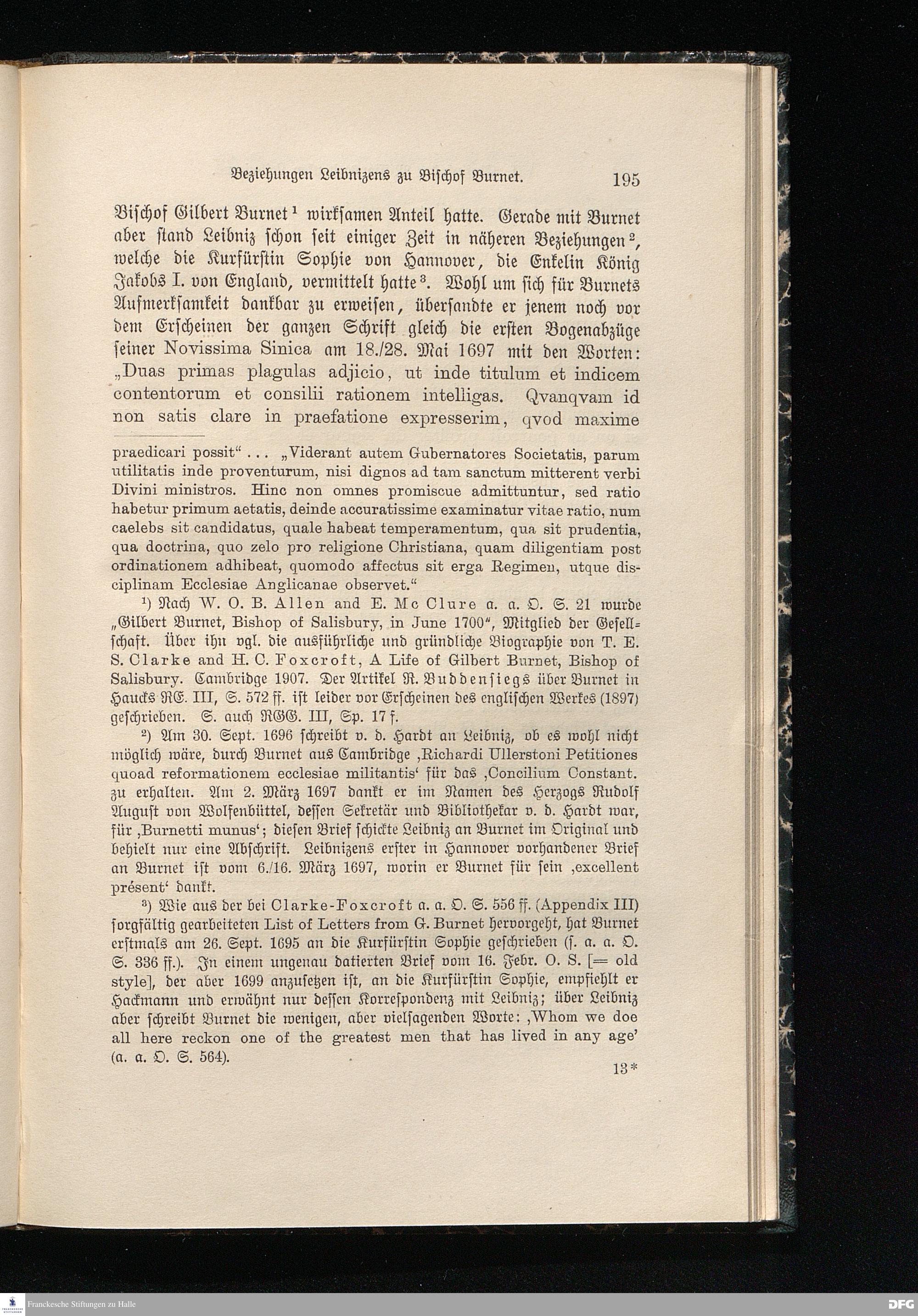 Anhang I. Unveröffentlichter Briefwechsel zwischen Leibniz und A. H. Francke aus den Jahren 1697-1699.
