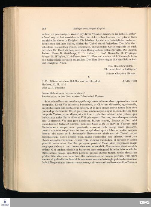 8. J. Ch. Bütner an ehem. Schüler aus der Slovakei, Moskau, 20. II. 1710 über A....