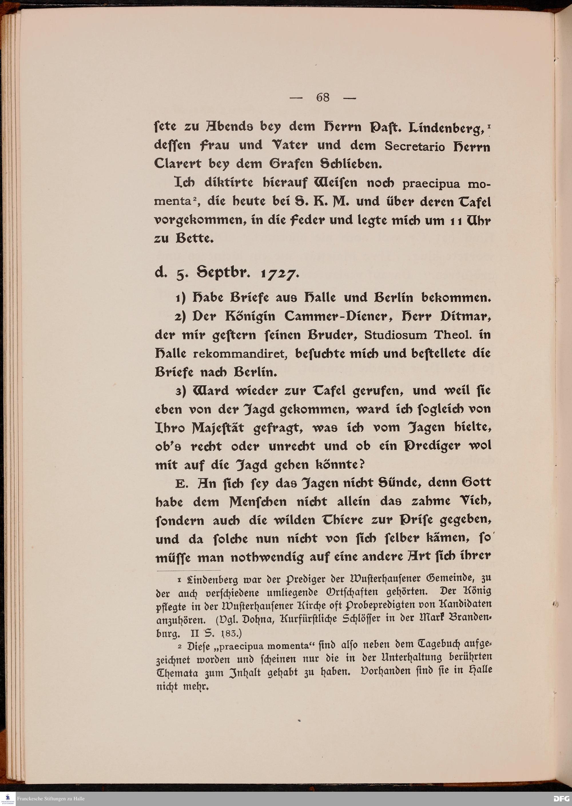 Sieben Tage am Hofe Friedrich Wilhelms I. Tagebuch des Professors J. A. Freylinghausen über seinen Aufenthalt in Wusterhausen vom 4. - 10. September 1727. Mit Einl. und Erkl. hrsg. von Bogdan Krieger.