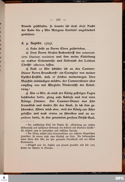 Sieben Tage am Hofe Friedrich Wilhelms I. Tagebuch des Professors J. A. Freylinghausen über seinen Aufenthalt in Wusterhausen vom 4. - 10. September 1727. Mit Einl. und Erkl. hrsg. von Bogdan Krieger.