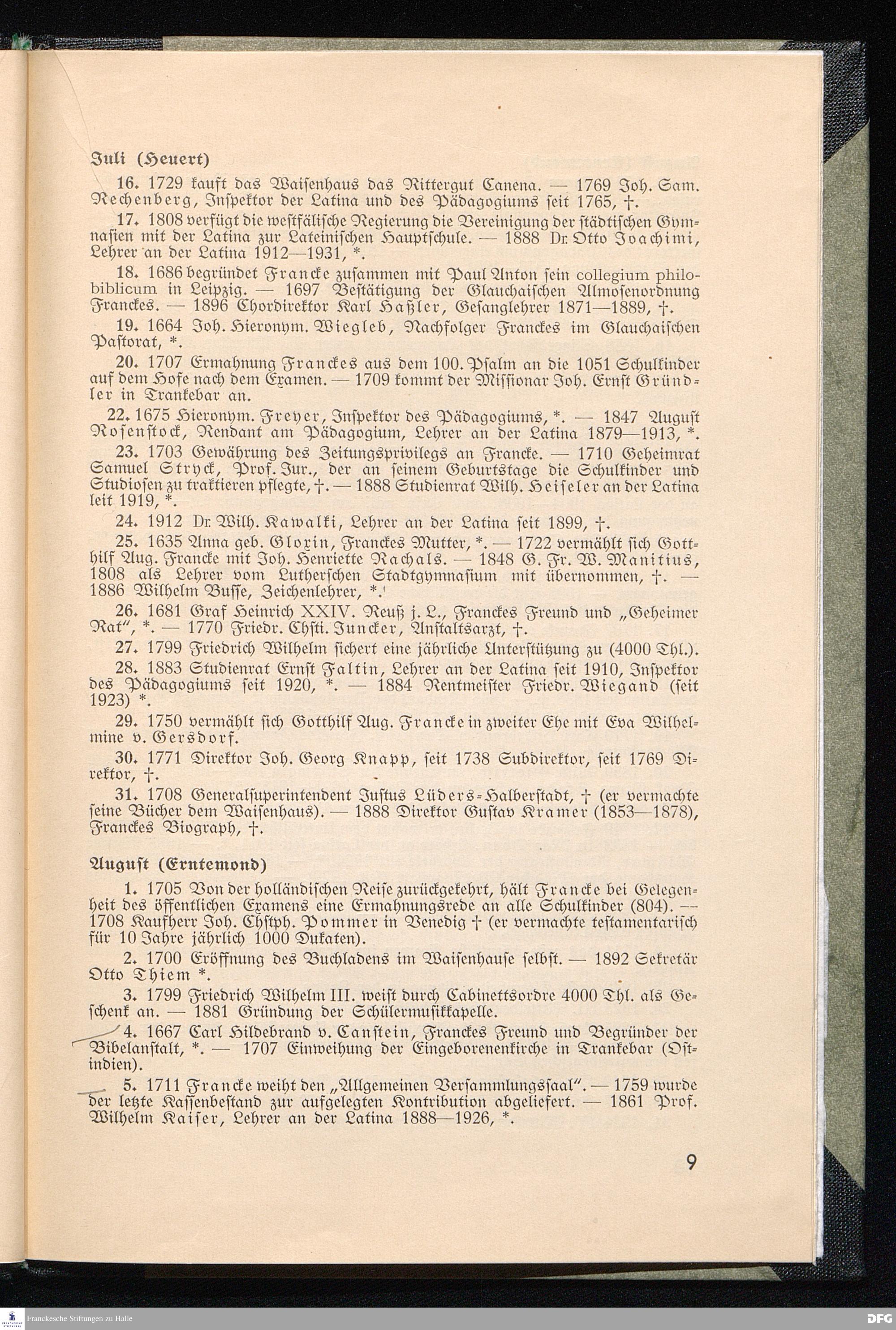 A. H. Francke-Kalender. Wichtige Ereignisse von der Gründung der Franckeschen Stiftungen an bis heute.