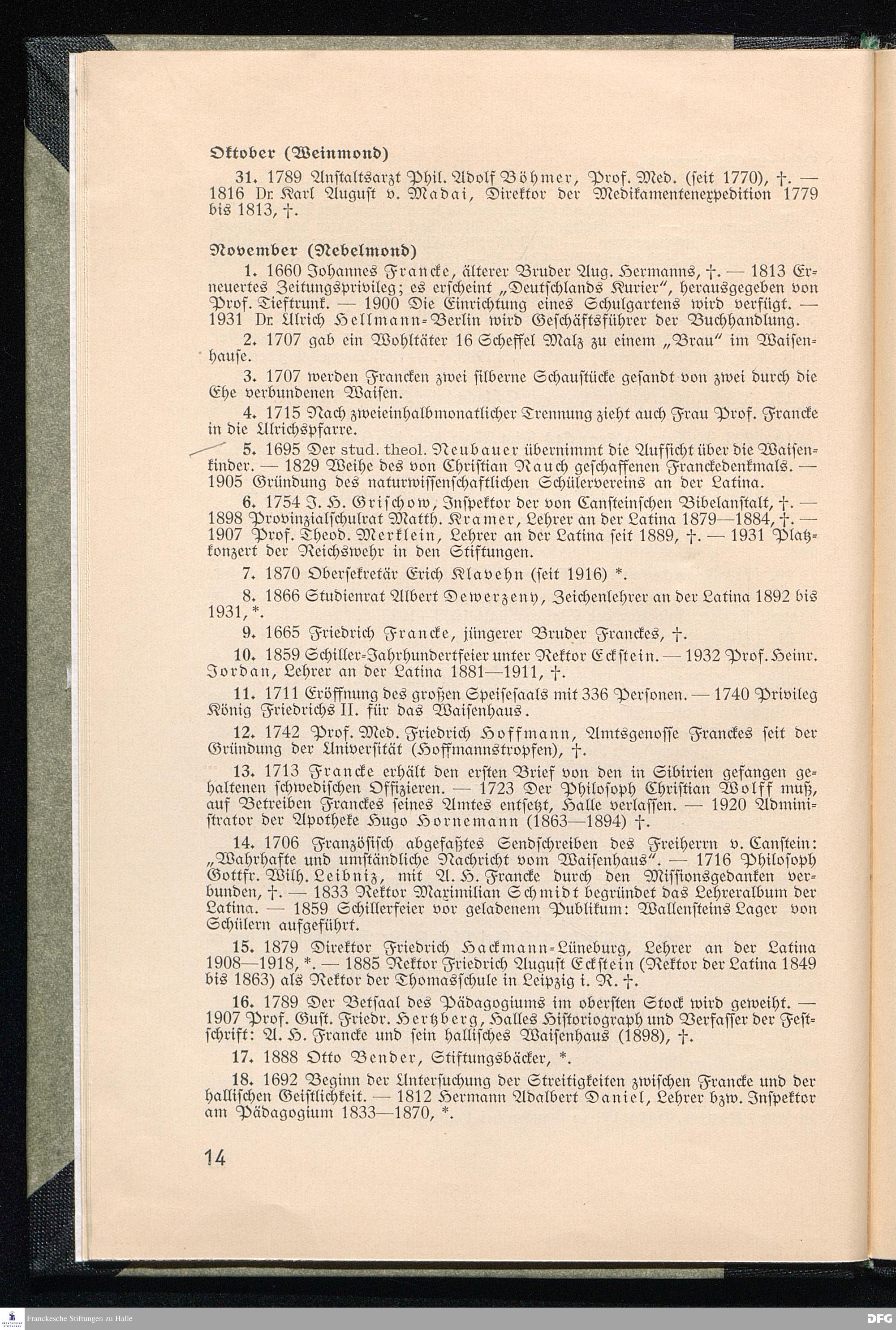 A. H. Francke-Kalender. Wichtige Ereignisse von der Gründung der Franckeschen Stiftungen...