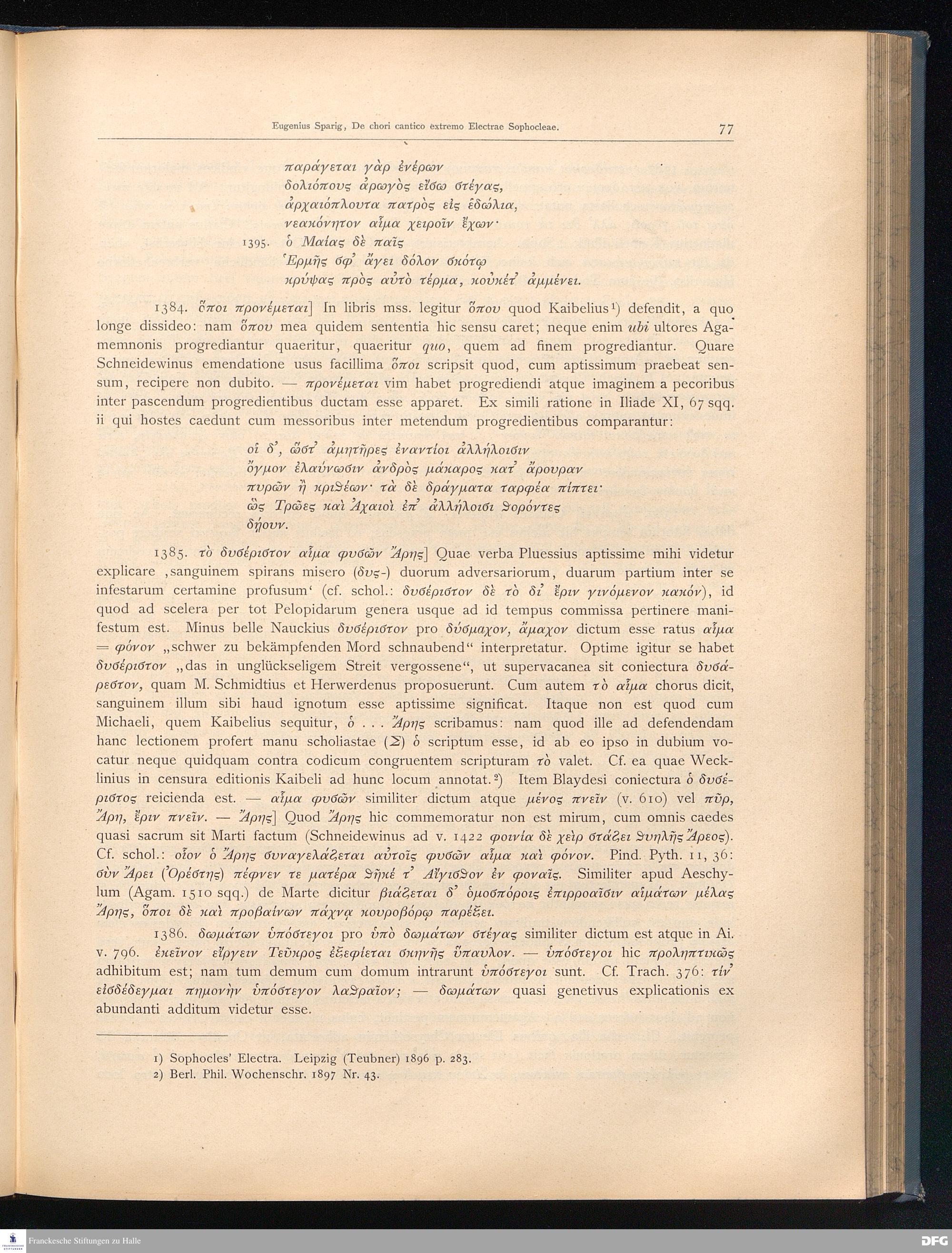 Festschrift zur zweihundertjährigen Jubelfeier der Franckeschen Stiftungen und der... De chori cantico extremo Electrae Sophocleae