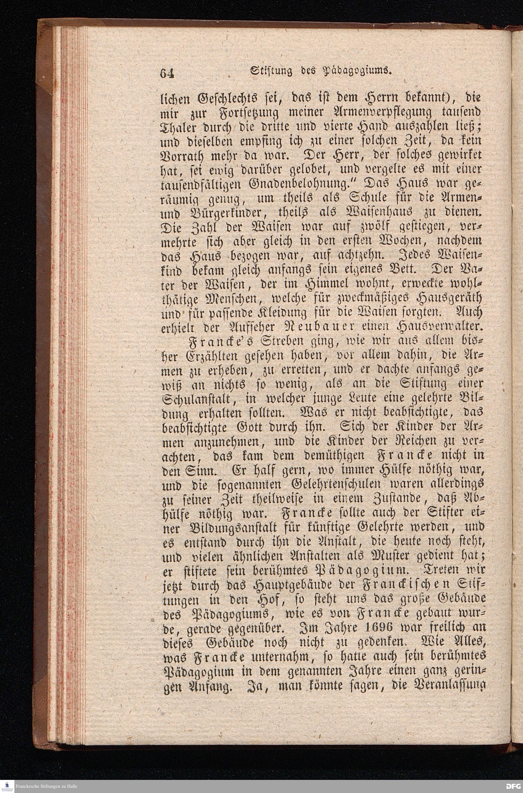 Das Leben August Hermann Francke's, des Stifters des Waisenhauses zu Halle.