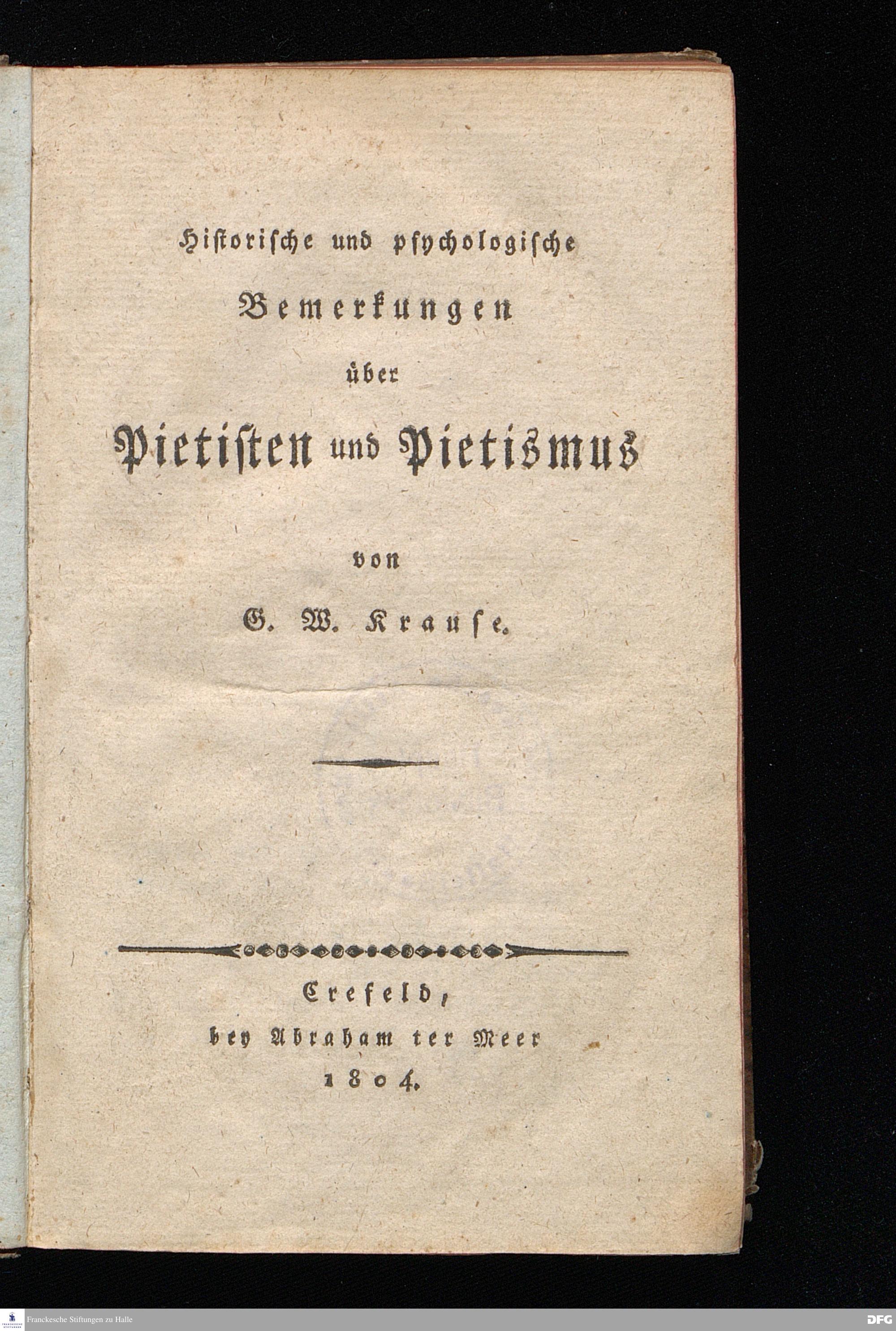 Historische und psychologische Bemerkungen über Pietisten u. Pietismus.