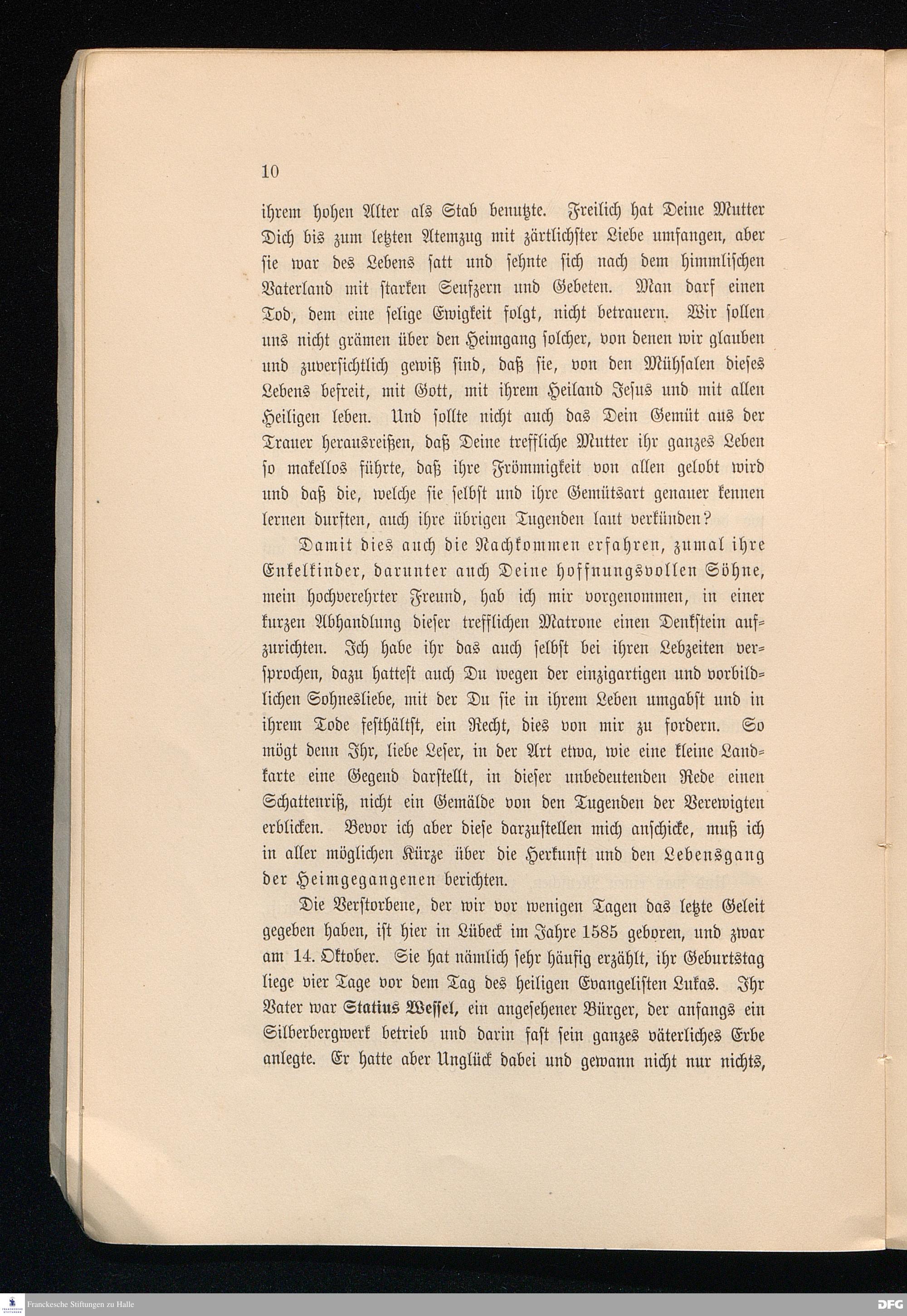 I. M. Bangerts Leichenschrift auf Elsabe Francke, geb. Wessel.