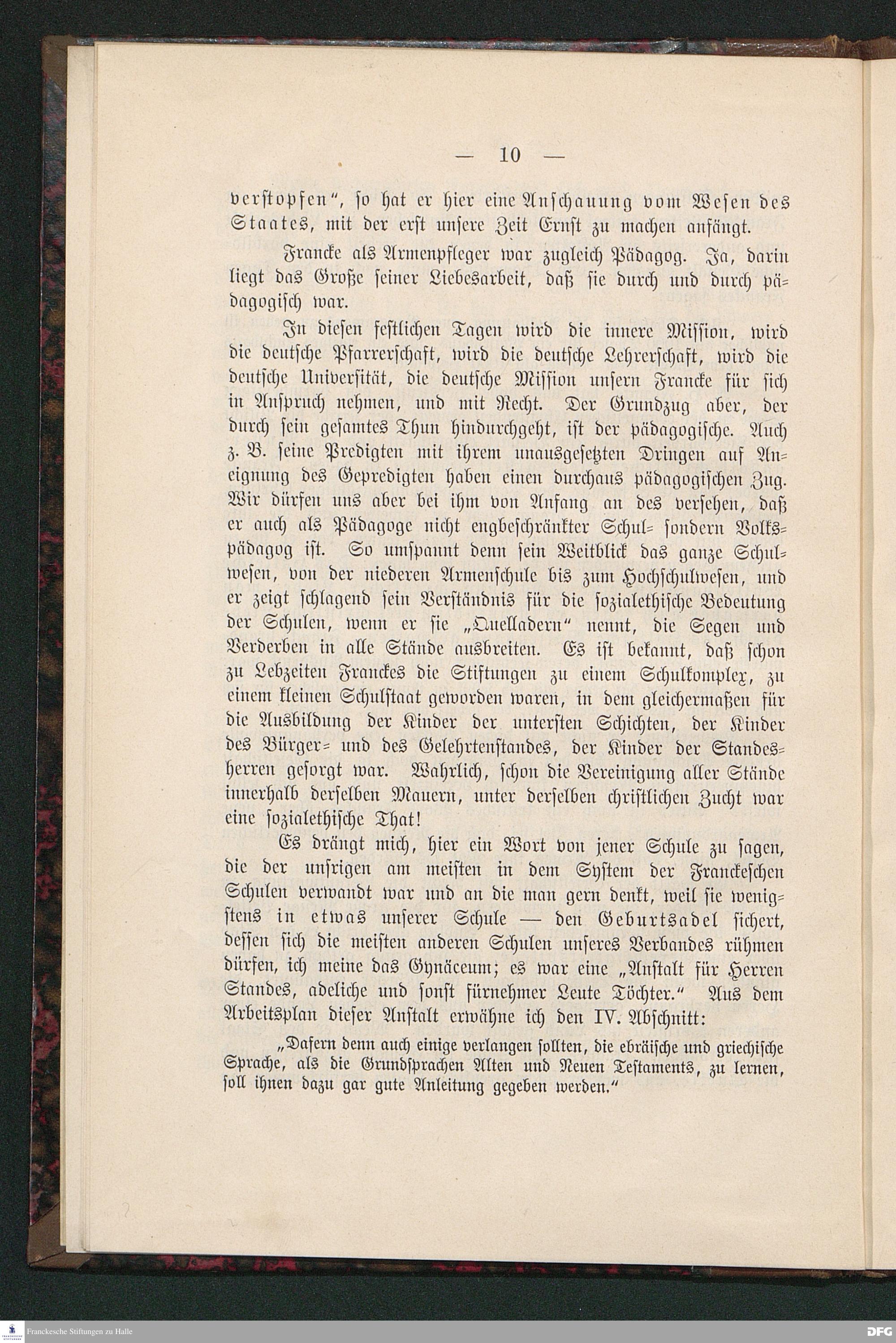 Festrede bei der zweiten Centenarfeier der Franckeschen Stiftungen in der Aula der höheren Mädchenschule.