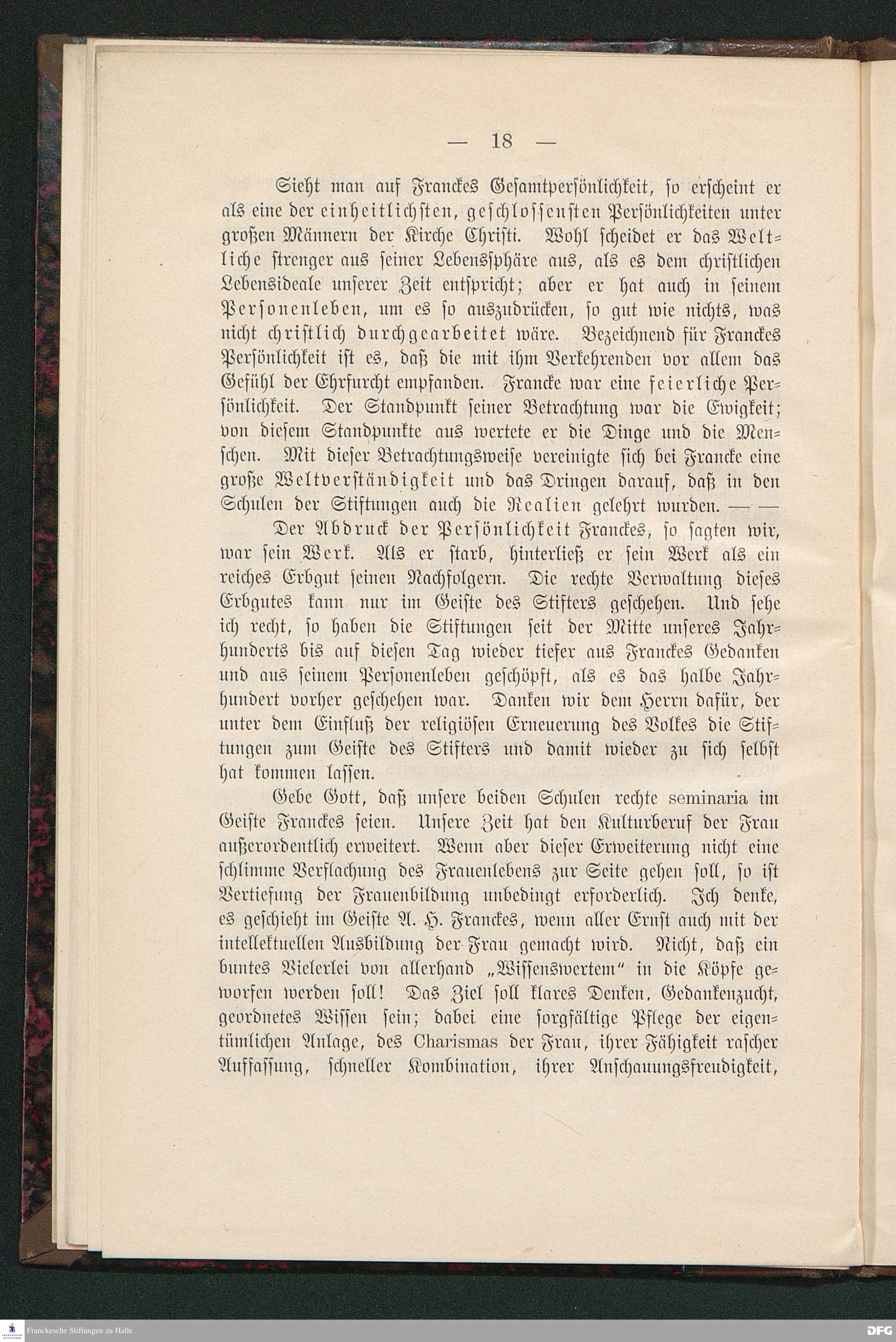 Festrede bei der zweiten Centenarfeier der Franckeschen Stiftungen in der Aula der...