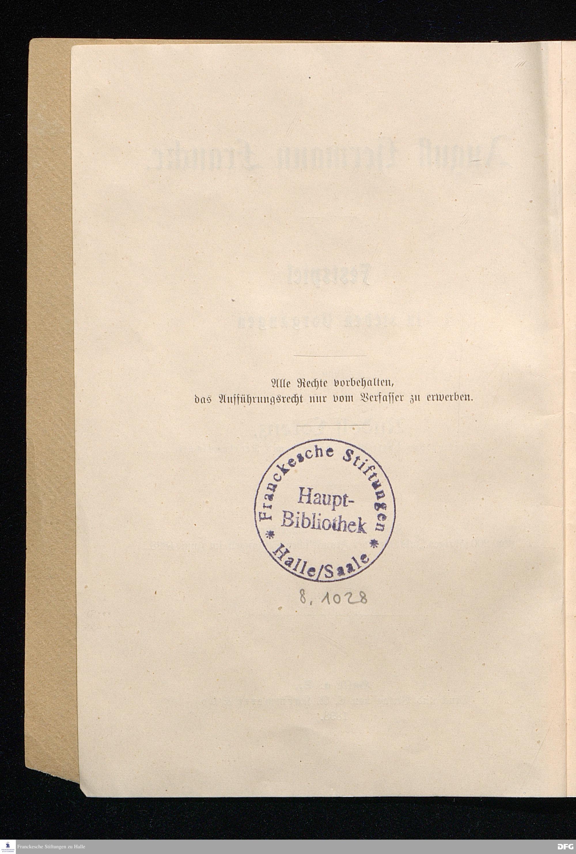 August Hermann Francke. Festspiel in sieben Vorgängen. Zum ersten Male aufgeführt zum 200jährigen Jubiläum der Francke'schen Stiftungen im Juni 1898.